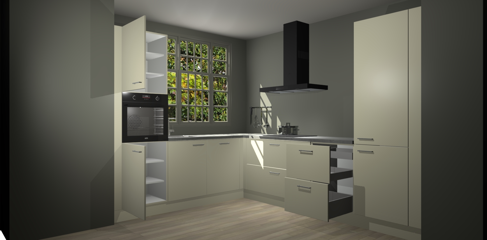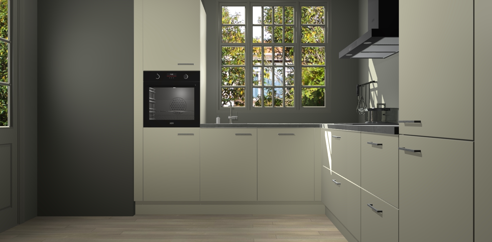 Met een modern, tijdloos design en ruime opslagruimte, zult u zich in no-time thuis voelen in uw nieuwe keuken. Uw leven wordt eenvoudiger met de soft-close deuren die voor het ultieme stille comfort zorgen - geen geluid dat u stoort terwijl u kookt. Ook is de keuken voorzien van 5 ingebouwde apparaten: een oven, inductie kookplaat, afzuigkap, vaatwasser en koelkast. Deze kunnen gemakkelijk na bestelling worden bijgewerkt naar AEG - waardoor uw luxe ervaring compleet is.