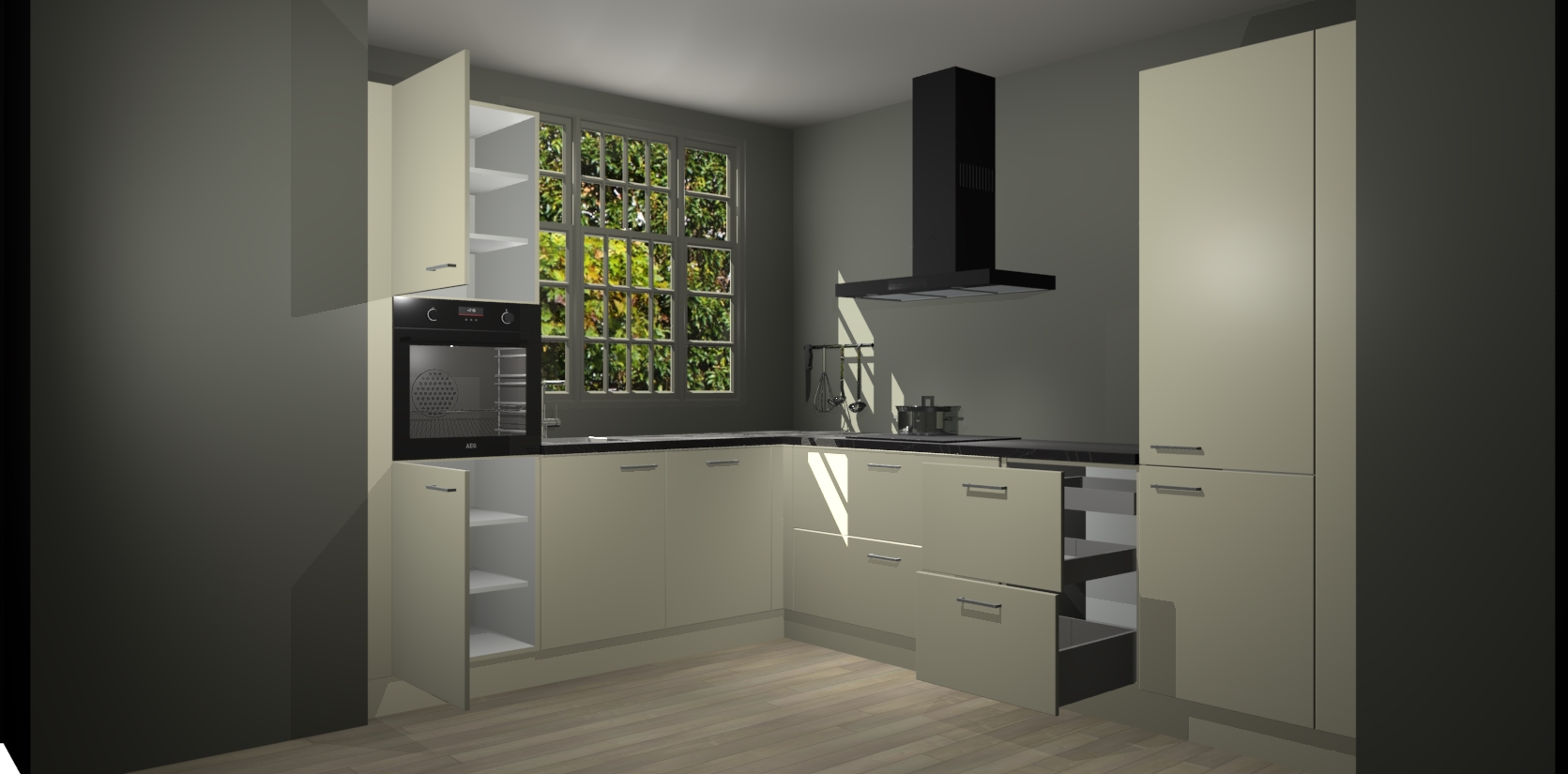 Met een modern, tijdloos design en ruime opslagruimte, zult u zich in no-time thuis voelen in uw nieuwe keuken. Uw leven wordt eenvoudiger met de soft-close deuren die voor het ultieme stille comfort zorgen - geen geluid dat u stoort terwijl u kookt. Ook is de keuken voorzien van 5 ingebouwde apparaten: een oven, inductie kookplaat, afzuigkap, vaatwasser en koelkast. Deze kunnen gemakkelijk na bestelling worden bijgewerkt naar AEG - waardoor uw luxe ervaring compleet is.