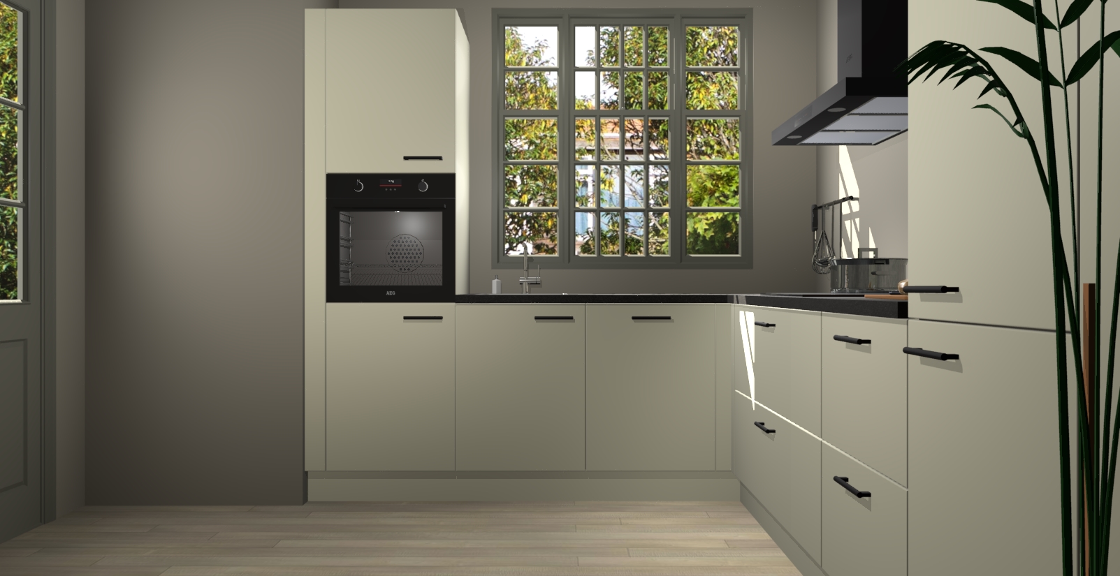 Met een modern, tijdloos design en ruime opslagruimte, zult u zich in no-time thuis voelen in uw nieuwe keuken. Uw leven wordt eenvoudiger met de soft-close deuren die voor het ultieme stille comfort zorgen - geen geluid dat u stoort terwijl u kookt. Ook is de keuken voorzien van 5 ingebouwde apparaten: een oven, inductie kookplaat, afzuigkap, vaatwasser en koelkast. Deze kunnen gemakkelijk na bestelling worden bijgewerkt naar AEG - waardoor uw luxe ervaring compleet is.