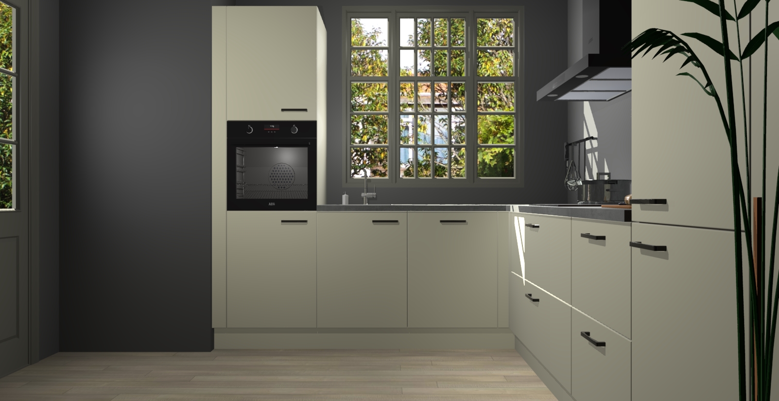 Met een modern, tijdloos design en ruime opslagruimte, zult u zich in no-time thuis voelen in uw nieuwe keuken. Uw leven wordt eenvoudiger met de soft-close deuren die voor het ultieme stille comfort zorgen - geen geluid dat u stoort terwijl u kookt. Ook is de keuken voorzien van 5 ingebouwde apparaten: een oven, inductie kookplaat, afzuigkap, vaatwasser en koelkast. Deze kunnen gemakkelijk na bestelling worden bijgewerkt naar AEG - waardoor uw luxe ervaring compleet is.