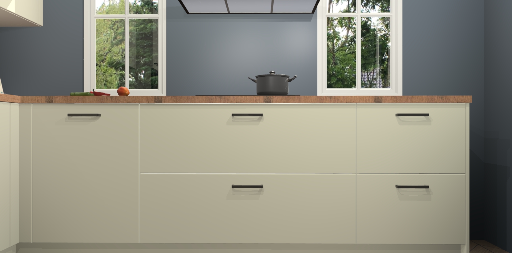 In deze box zijn alle kleuren verzameld van de deuren en werkbladen. Vraag de gratis kleurenbox aan en kijk thuis rustig verder!