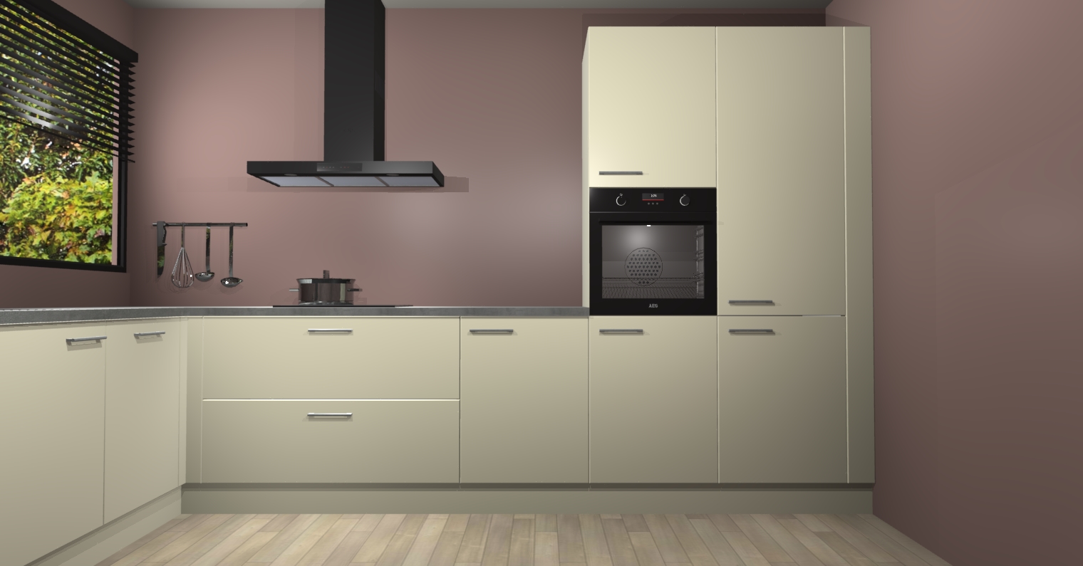 Met een modern, tijdloos design en ruime opslagruimte, zult u zich in no-time thuis voelen in uw nieuwe keuken. Uw leven wordt eenvoudiger met de soft-close deuren die voor het ultieme stille comfort zorgen - geen geluid dat u stoort terwijl u kookt. Ook is de keuken voorzien van 5 ingebouwde apparaten: een oven, inductie kookplaat, afzuigkap, vaatwasser en koelkast. Deze kunnen gemakkelijk na bestelling worden bijgewerkt naar AEG - waardoor uw luxe ervaring compleet is.