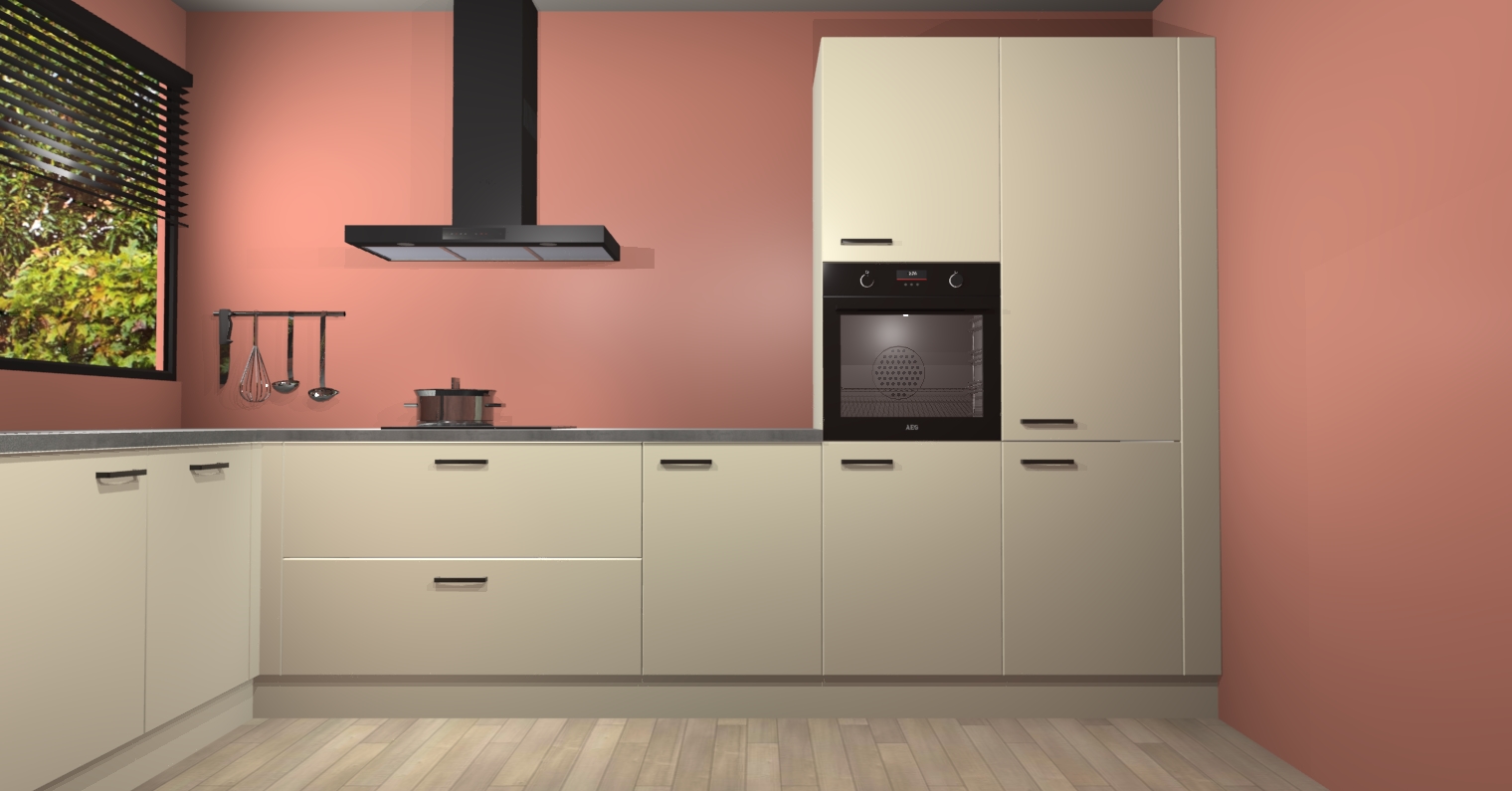 Met een modern, tijdloos design en ruime opslagruimte, zult u zich in no-time thuis voelen in uw nieuwe keuken. Uw leven wordt eenvoudiger met de soft-close deuren die voor het ultieme stille comfort zorgen - geen geluid dat u stoort terwijl u kookt. Ook is de keuken voorzien van 5 ingebouwde apparaten: een oven, inductie kookplaat, afzuigkap, vaatwasser en koelkast. Deze kunnen gemakkelijk na bestelling worden bijgewerkt naar AEG - waardoor uw luxe ervaring compleet is.