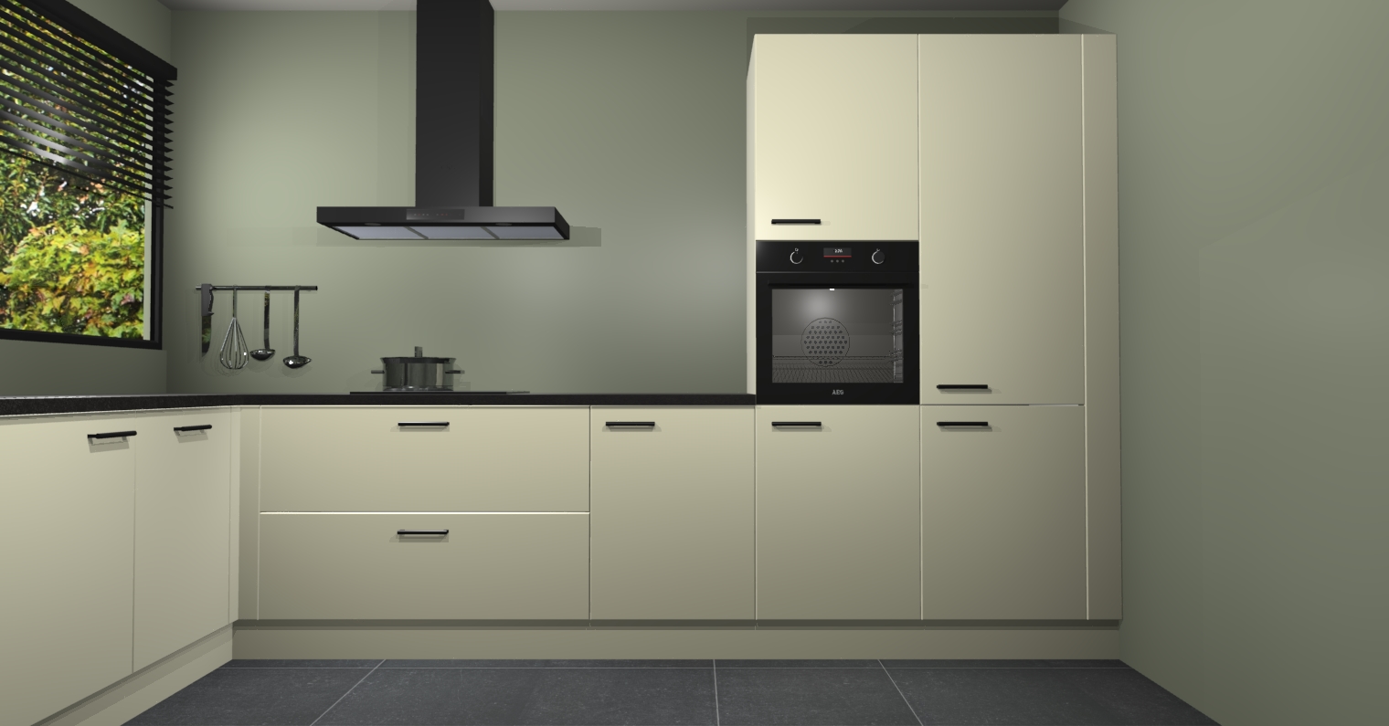 Met een modern, tijdloos design en ruime opslagruimte, zult u zich in no-time thuis voelen in uw nieuwe keuken. Uw leven wordt eenvoudiger met de soft-close deuren die voor het ultieme stille comfort zorgen - geen geluid dat u stoort terwijl u kookt. Ook is de keuken voorzien van 5 ingebouwde apparaten: een oven, inductie kookplaat, afzuigkap, vaatwasser en koelkast. Deze kunnen gemakkelijk na bestelling worden bijgewerkt naar AEG - waardoor uw luxe ervaring compleet is.