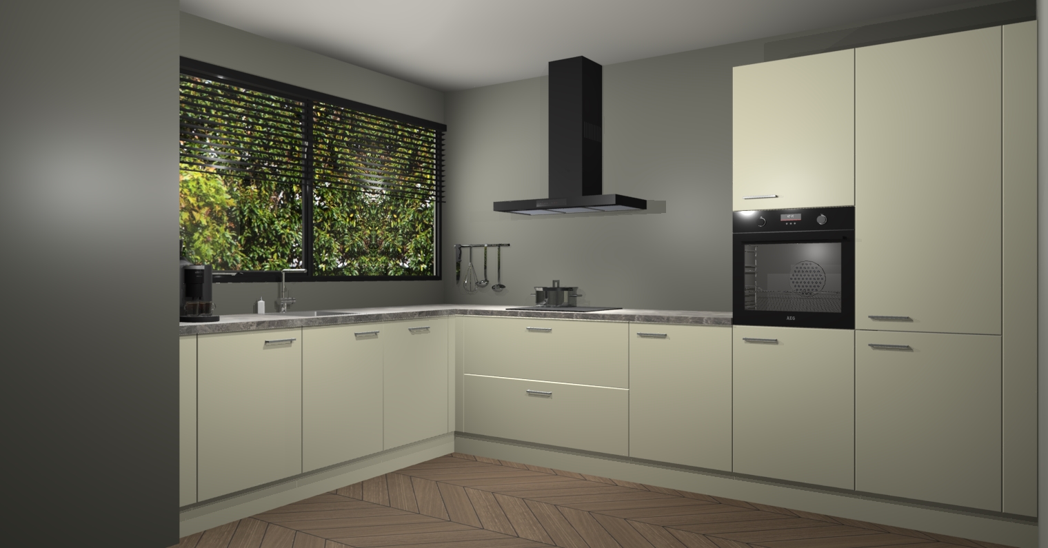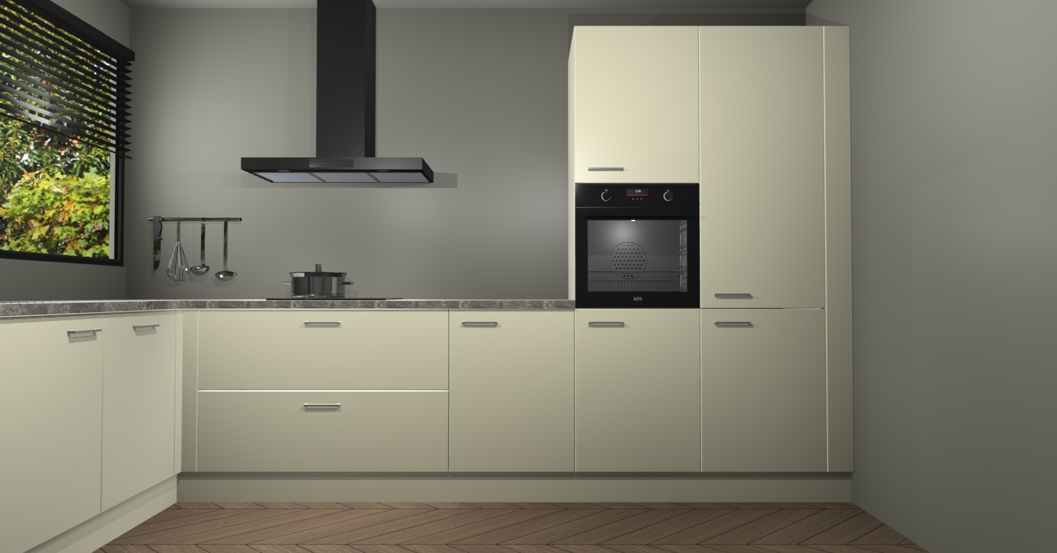 Met een modern, tijdloos design en ruime opslagruimte, zult u zich in no-time thuis voelen in uw nieuwe keuken. Uw leven wordt eenvoudiger met de soft-close deuren die voor het ultieme stille comfort zorgen - geen geluid dat u stoort terwijl u kookt. Ook is de keuken voorzien van 5 ingebouwde apparaten: een oven, inductie kookplaat, afzuigkap, vaatwasser en koelkast. Deze kunnen gemakkelijk na bestelling worden bijgewerkt naar AEG - waardoor uw luxe ervaring compleet is.