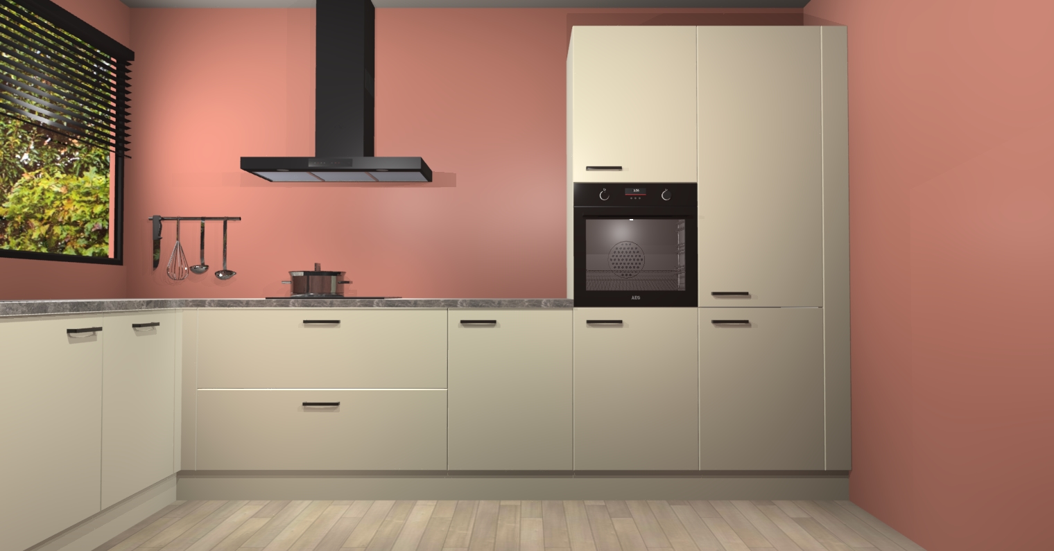 Met een modern, tijdloos design en ruime opslagruimte, zult u zich in no-time thuis voelen in uw nieuwe keuken. Uw leven wordt eenvoudiger met de soft-close deuren die voor het ultieme stille comfort zorgen - geen geluid dat u stoort terwijl u kookt. Ook is de keuken voorzien van 5 ingebouwde apparaten: een oven, inductie kookplaat, afzuigkap, vaatwasser en koelkast. Deze kunnen gemakkelijk na bestelling worden bijgewerkt naar AEG - waardoor uw luxe ervaring compleet is.