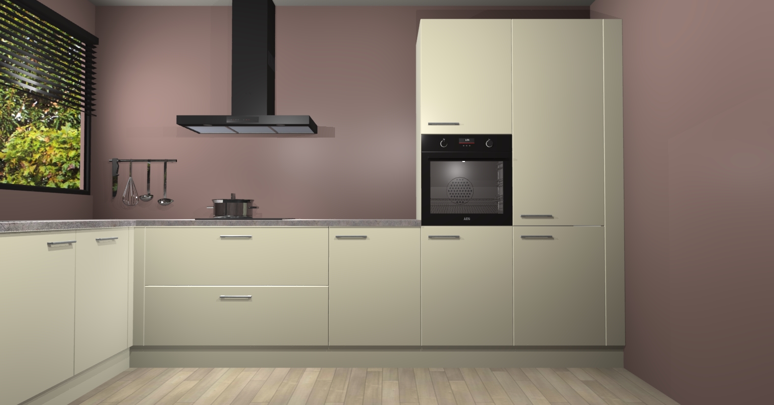 Met een modern, tijdloos design en ruime opslagruimte, zult u zich in no-time thuis voelen in uw nieuwe keuken. Uw leven wordt eenvoudiger met de soft-close deuren die voor het ultieme stille comfort zorgen - geen geluid dat u stoort terwijl u kookt. Ook is de keuken voorzien van 5 ingebouwde apparaten: een oven, inductie kookplaat, afzuigkap, vaatwasser en koelkast. Deze kunnen gemakkelijk na bestelling worden bijgewerkt naar AEG - waardoor uw luxe ervaring compleet is.