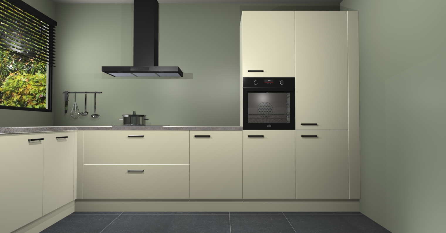 Met een modern, tijdloos design en ruime opslagruimte, zult u zich in no-time thuis voelen in uw nieuwe keuken. Uw leven wordt eenvoudiger met de soft-close deuren die voor het ultieme stille comfort zorgen - geen geluid dat u stoort terwijl u kookt. Ook is de keuken voorzien van 5 ingebouwde apparaten: een oven, inductie kookplaat, afzuigkap, vaatwasser en koelkast. Deze kunnen gemakkelijk na bestelling worden bijgewerkt naar AEG - waardoor uw luxe ervaring compleet is.