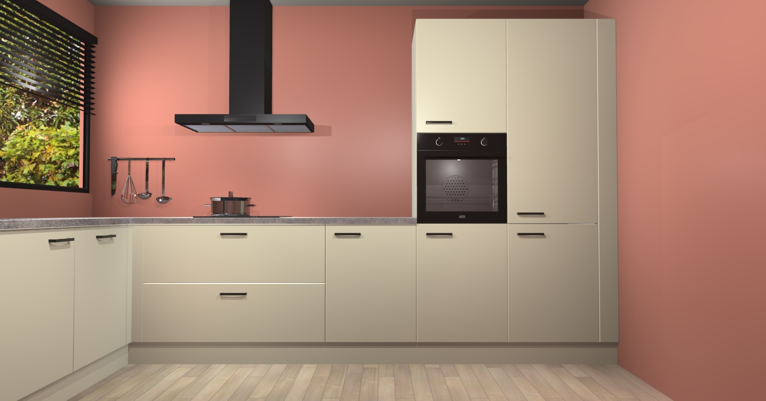 Met een modern, tijdloos design en ruime opslagruimte, zult u zich in no-time thuis voelen in uw nieuwe keuken. Uw leven wordt eenvoudiger met de soft-close deuren die voor het ultieme stille comfort zorgen - geen geluid dat u stoort terwijl u kookt. Ook is de keuken voorzien van 5 ingebouwde apparaten: een oven, inductie kookplaat, afzuigkap, vaatwasser en koelkast. Deze kunnen gemakkelijk na bestelling worden bijgewerkt naar AEG - waardoor uw luxe ervaring compleet is.