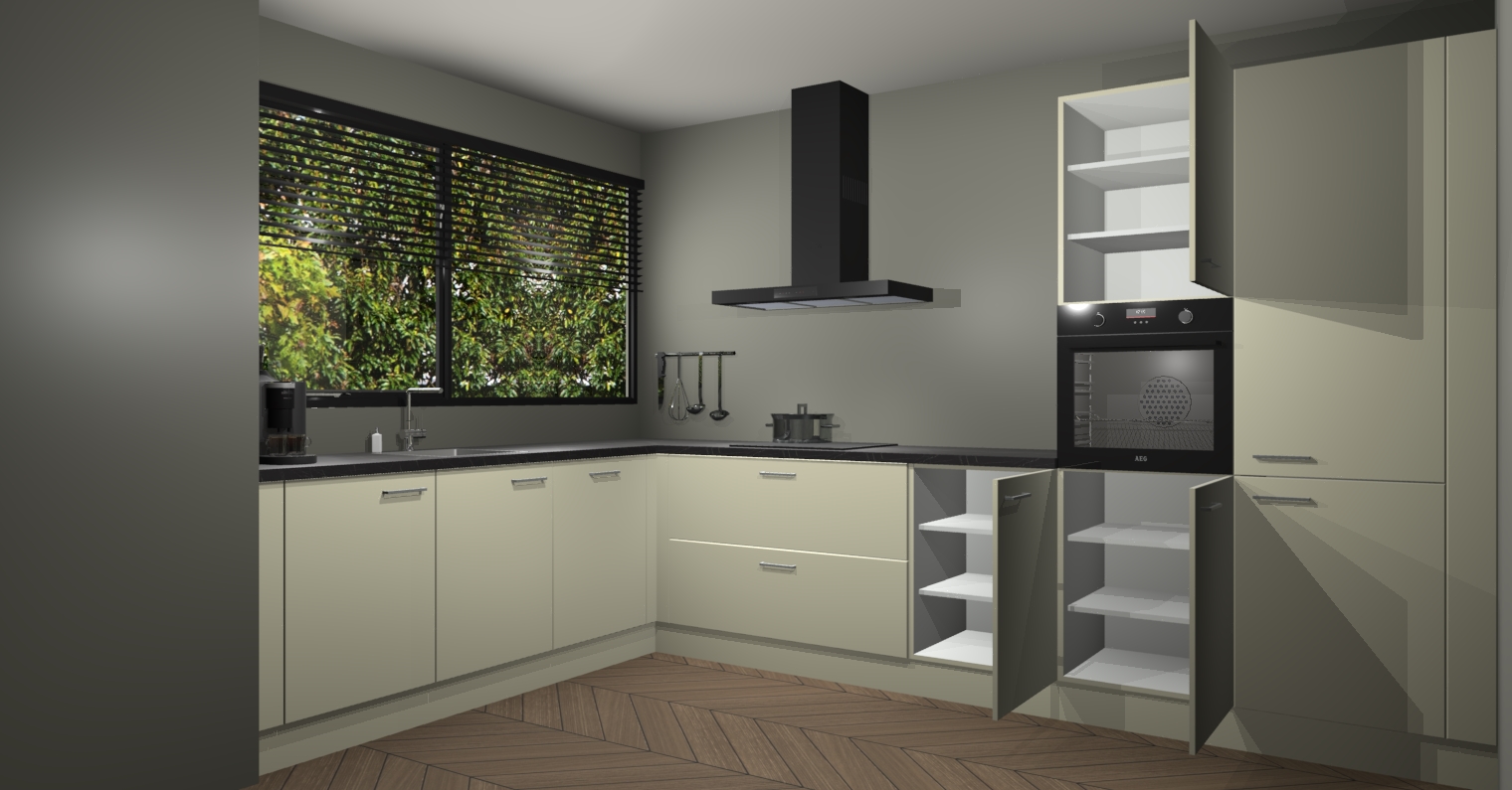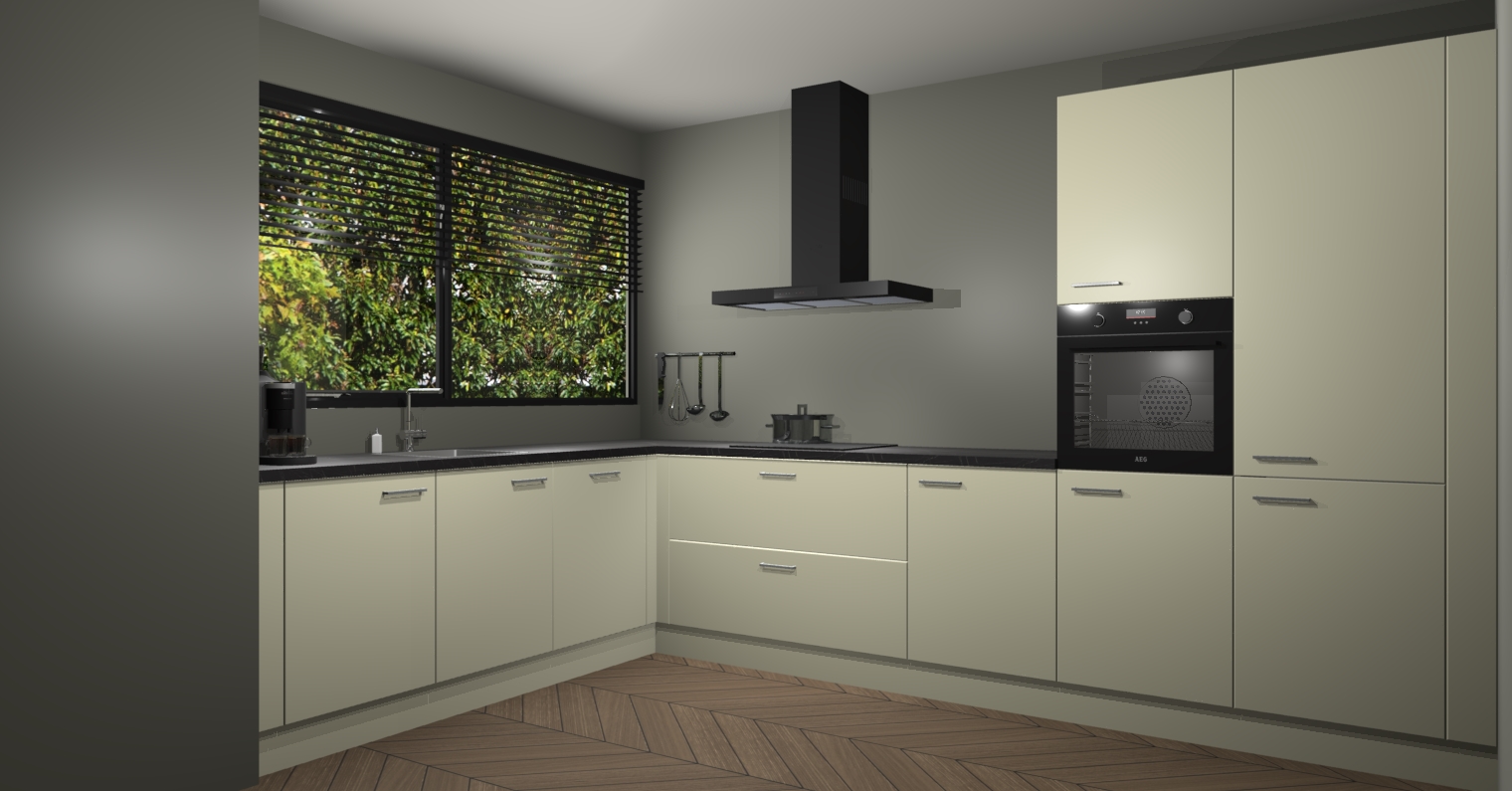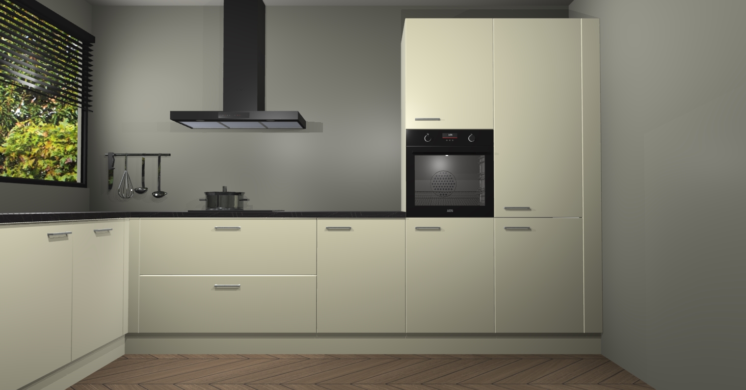 Met een modern, tijdloos design en ruime opslagruimte, zult u zich in no-time thuis voelen in uw nieuwe keuken. Uw leven wordt eenvoudiger met de soft-close deuren die voor het ultieme stille comfort zorgen - geen geluid dat u stoort terwijl u kookt. Ook is de keuken voorzien van 5 ingebouwde apparaten: een oven, inductie kookplaat, afzuigkap, vaatwasser en koelkast. Deze kunnen gemakkelijk na bestelling worden bijgewerkt naar AEG - waardoor uw luxe ervaring compleet is.