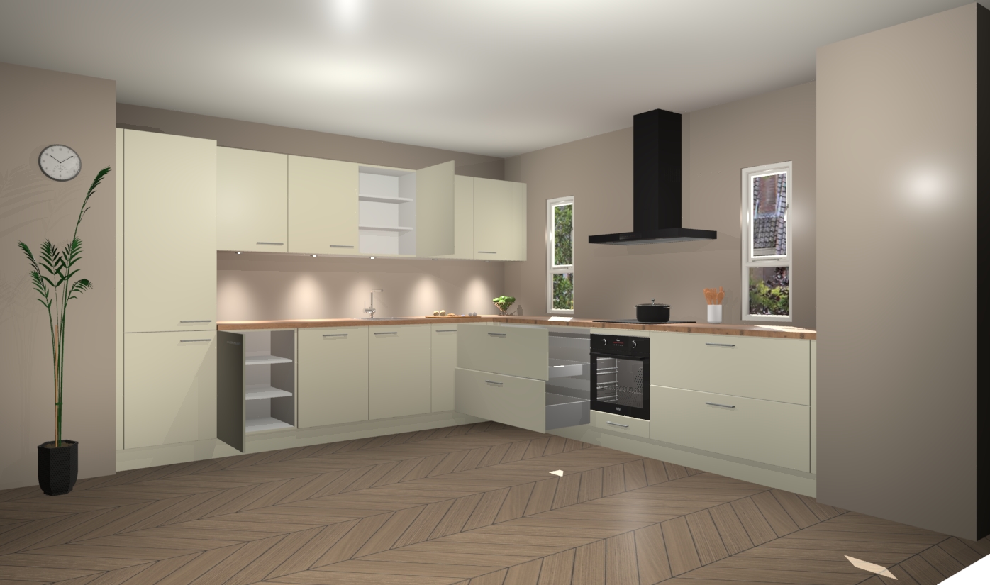 De magnolia keuken is een ideale hoekkeuken en heeft alle functies en apparatuur die u maar nodig kunt hebben. Bij de bestelling krijgt u een oven, inductiekookplaat, afzuigkap, vaatwasser en koelkast - deze kunnen desgewenst eenvoudig worden uitgebreid naar AEG na bestellen. Elke kast wordt ook voor gemonteerd geleverd met soft close deuren die jarenlang gebruik beloven. Stelt u zich voor dat u geen gedoe heeft met vervelende montage - vanaf het moment dat u uw bestelling plaats, duurt het slechts 7 weken voor het bij u thuis geleverd wordt.