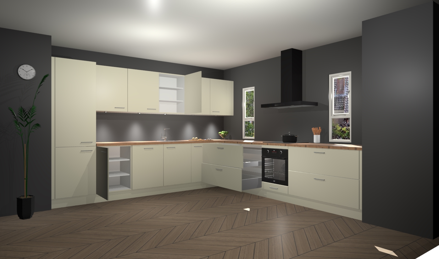 De magnolia keuken is een ideale hoekkeuken en heeft alle functies en apparatuur die u maar nodig kunt hebben. Bij de bestelling krijgt u een oven, inductiekookplaat, afzuigkap, vaatwasser en koelkast - deze kunnen desgewenst eenvoudig worden uitgebreid naar AEG na bestellen. Elke kast wordt ook voor gemonteerd geleverd met soft close deuren die jarenlang gebruik beloven. Stelt u zich voor dat u geen gedoe heeft met vervelende montage - vanaf het moment dat u uw bestelling plaats, duurt het slechts 7 weken voor het bij u thuis geleverd wordt.