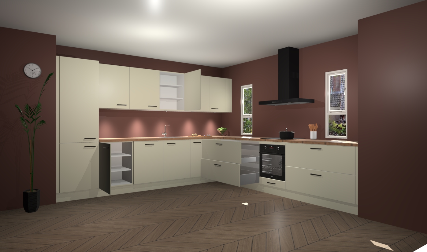 De magnolia keuken is een ideale hoekkeuken en heeft alle functies en apparatuur die u maar nodig kunt hebben. Bij de bestelling krijgt u een oven, inductiekookplaat, afzuigkap, vaatwasser en koelkast - deze kunnen desgewenst eenvoudig worden uitgebreid naar AEG na bestellen. Elke kast wordt ook voor gemonteerd geleverd met soft close deuren die jarenlang gebruik beloven. Stelt u zich voor dat u geen gedoe heeft met vervelende montage - vanaf het moment dat u uw bestelling plaats, duurt het slechts 7 weken voor het bij u thuis geleverd wordt.