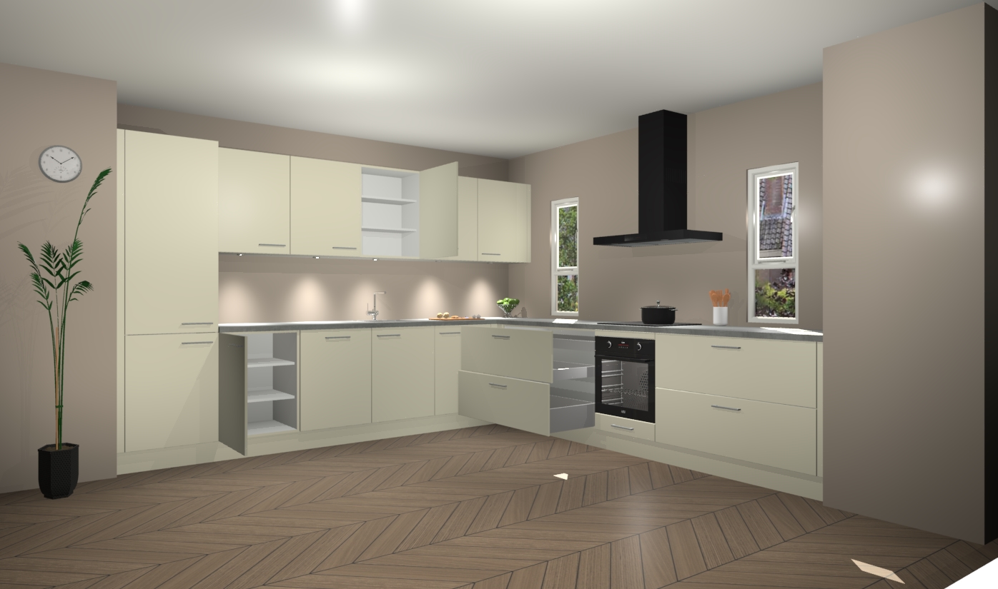 De magnolia keuken is een ideale hoekkeuken en heeft alle functies en apparatuur die u maar nodig kunt hebben. Bij de bestelling krijgt u een oven, inductiekookplaat, afzuigkap, vaatwasser en koelkast - deze kunnen desgewenst eenvoudig worden uitgebreid naar AEG na bestellen. Elke kast wordt ook voor gemonteerd geleverd met soft close deuren die jarenlang gebruik beloven. Stelt u zich voor dat u geen gedoe heeft met vervelende montage - vanaf het moment dat u uw bestelling plaats, duurt het slechts 7 weken voor het bij u thuis geleverd wordt.