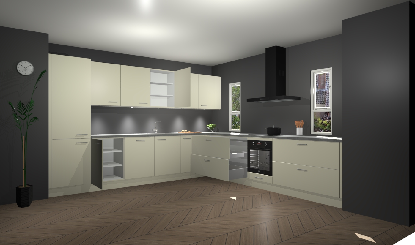 De magnolia keuken is een ideale hoekkeuken en heeft alle functies en apparatuur die u maar nodig kunt hebben. Bij de bestelling krijgt u een oven, inductiekookplaat, afzuigkap, vaatwasser en koelkast - deze kunnen desgewenst eenvoudig worden uitgebreid naar AEG na bestellen. Elke kast wordt ook voor gemonteerd geleverd met soft close deuren die jarenlang gebruik beloven. Stelt u zich voor dat u geen gedoe heeft met vervelende montage - vanaf het moment dat u uw bestelling plaats, duurt het slechts 7 weken voor het bij u thuis geleverd wordt.