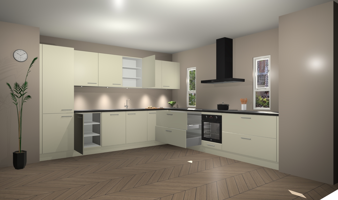 De magnolia keuken is een ideale hoekkeuken en heeft alle functies en apparatuur die u maar nodig kunt hebben. Bij de bestelling krijgt u een oven, inductiekookplaat, afzuigkap, vaatwasser en koelkast - deze kunnen desgewenst eenvoudig worden uitgebreid naar AEG na bestellen. Elke kast wordt ook voor gemonteerd geleverd met soft close deuren die jarenlang gebruik beloven. Stelt u zich voor dat u geen gedoe heeft met vervelende montage - vanaf het moment dat u uw bestelling plaats, duurt het slechts 7 weken voor het bij u thuis geleverd wordt.