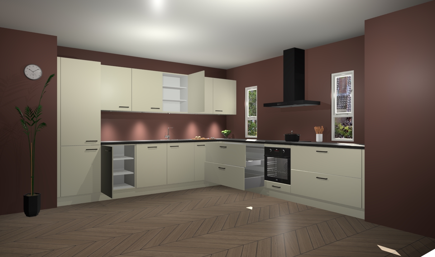 De magnolia keuken is een ideale hoekkeuken en heeft alle functies en apparatuur die u maar nodig kunt hebben. Bij de bestelling krijgt u een oven, inductiekookplaat, afzuigkap, vaatwasser en koelkast - deze kunnen desgewenst eenvoudig worden uitgebreid naar AEG na bestellen. Elke kast wordt ook voor gemonteerd geleverd met soft close deuren die jarenlang gebruik beloven. Stelt u zich voor dat u geen gedoe heeft met vervelende montage - vanaf het moment dat u uw bestelling plaats, duurt het slechts 7 weken voor het bij u thuis geleverd wordt.