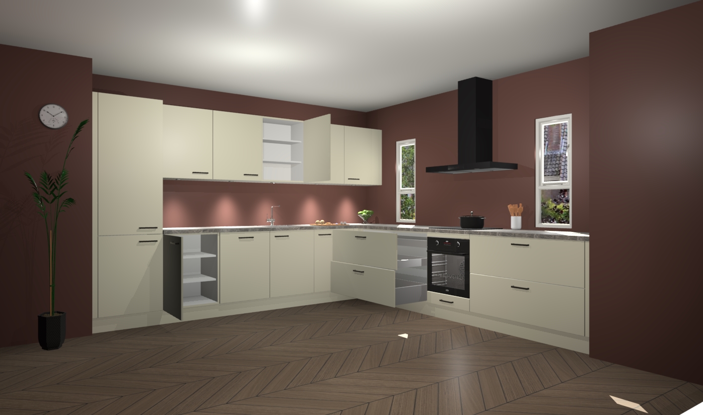 De magnolia keuken is een ideale hoekkeuken en heeft alle functies en apparatuur die u maar nodig kunt hebben. Bij de bestelling krijgt u een oven, inductiekookplaat, afzuigkap, vaatwasser en koelkast - deze kunnen desgewenst eenvoudig worden uitgebreid naar AEG na bestellen. Elke kast wordt ook voor gemonteerd geleverd met soft close deuren die jarenlang gebruik beloven. Stelt u zich voor dat u geen gedoe heeft met vervelende montage - vanaf het moment dat u uw bestelling plaats, duurt het slechts 7 weken voor het bij u thuis geleverd wordt.