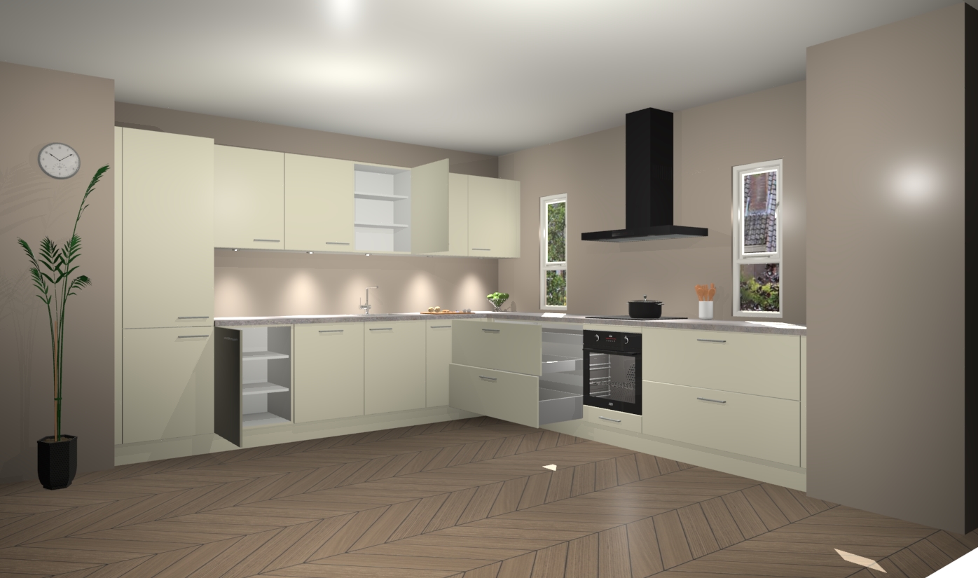 De magnolia keuken is een ideale hoekkeuken en heeft alle functies en apparatuur die u maar nodig kunt hebben. Bij de bestelling krijgt u een oven, inductiekookplaat, afzuigkap, vaatwasser en koelkast - deze kunnen desgewenst eenvoudig worden uitgebreid naar AEG na bestellen. Elke kast wordt ook voor gemonteerd geleverd met soft close deuren die jarenlang gebruik beloven. Stelt u zich voor dat u geen gedoe heeft met vervelende montage - vanaf het moment dat u uw bestelling plaats, duurt het slechts 7 weken voor het bij u thuis geleverd wordt.