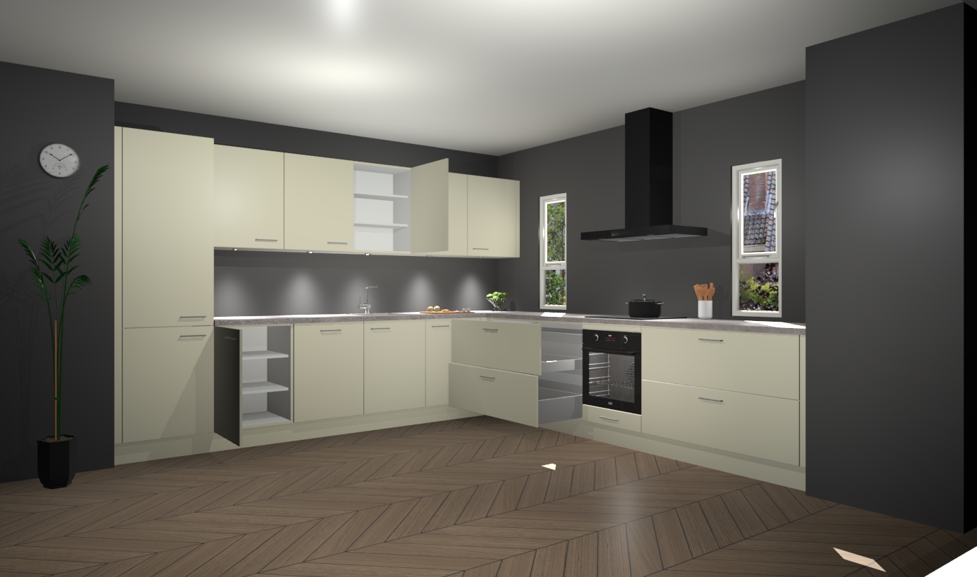 De magnolia keuken is een ideale hoekkeuken en heeft alle functies en apparatuur die u maar nodig kunt hebben. Bij de bestelling krijgt u een oven, inductiekookplaat, afzuigkap, vaatwasser en koelkast - deze kunnen desgewenst eenvoudig worden uitgebreid naar AEG na bestellen. Elke kast wordt ook voor gemonteerd geleverd met soft close deuren die jarenlang gebruik beloven. Stelt u zich voor dat u geen gedoe heeft met vervelende montage - vanaf het moment dat u uw bestelling plaats, duurt het slechts 7 weken voor het bij u thuis geleverd wordt.