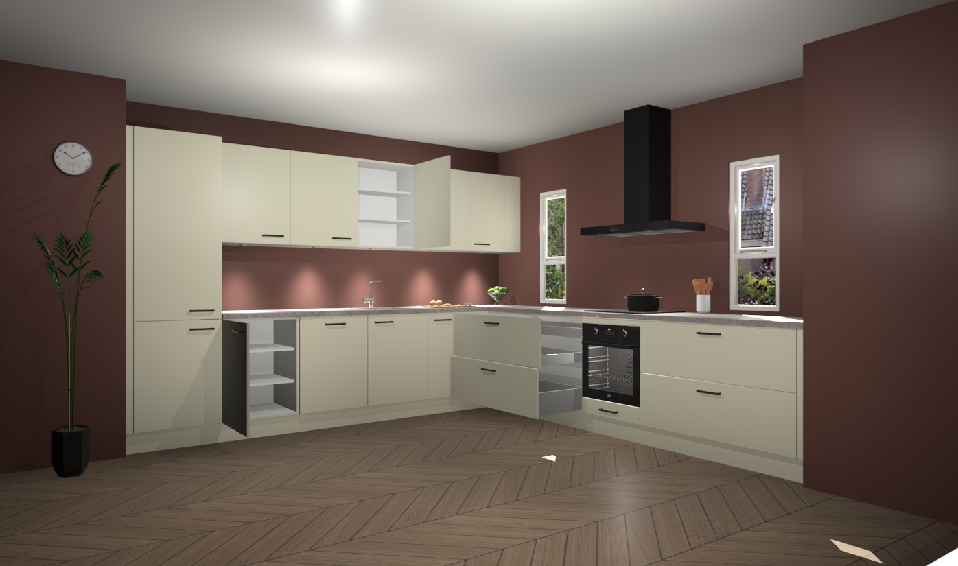 De magnolia keuken is een ideale hoekkeuken en heeft alle functies en apparatuur die u maar nodig kunt hebben. Bij de bestelling krijgt u een oven, inductiekookplaat, afzuigkap, vaatwasser en koelkast - deze kunnen desgewenst eenvoudig worden uitgebreid naar AEG na bestellen. Elke kast wordt ook voor gemonteerd geleverd met soft close deuren die jarenlang gebruik beloven. Stelt u zich voor dat u geen gedoe heeft met vervelende montage - vanaf het moment dat u uw bestelling plaats, duurt het slechts 7 weken voor het bij u thuis geleverd wordt.
