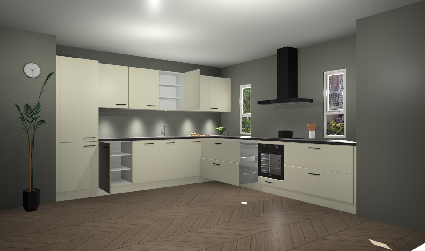 De magnolia keuken is een ideale hoekkeuken en heeft alle functies en apparatuur die u maar nodig kunt hebben. Bij de bestelling krijgt u een oven, inductiekookplaat, afzuigkap, vaatwasser en koelkast - deze kunnen desgewenst eenvoudig worden uitgebreid naar AEG na bestellen. Elke kast wordt ook voor gemonteerd geleverd met soft close deuren die jarenlang gebruik beloven. Stelt u zich voor dat u geen gedoe heeft met vervelende montage - vanaf het moment dat u uw bestelling plaats, duurt het slechts 7 weken voor het bij u thuis geleverd wordt.