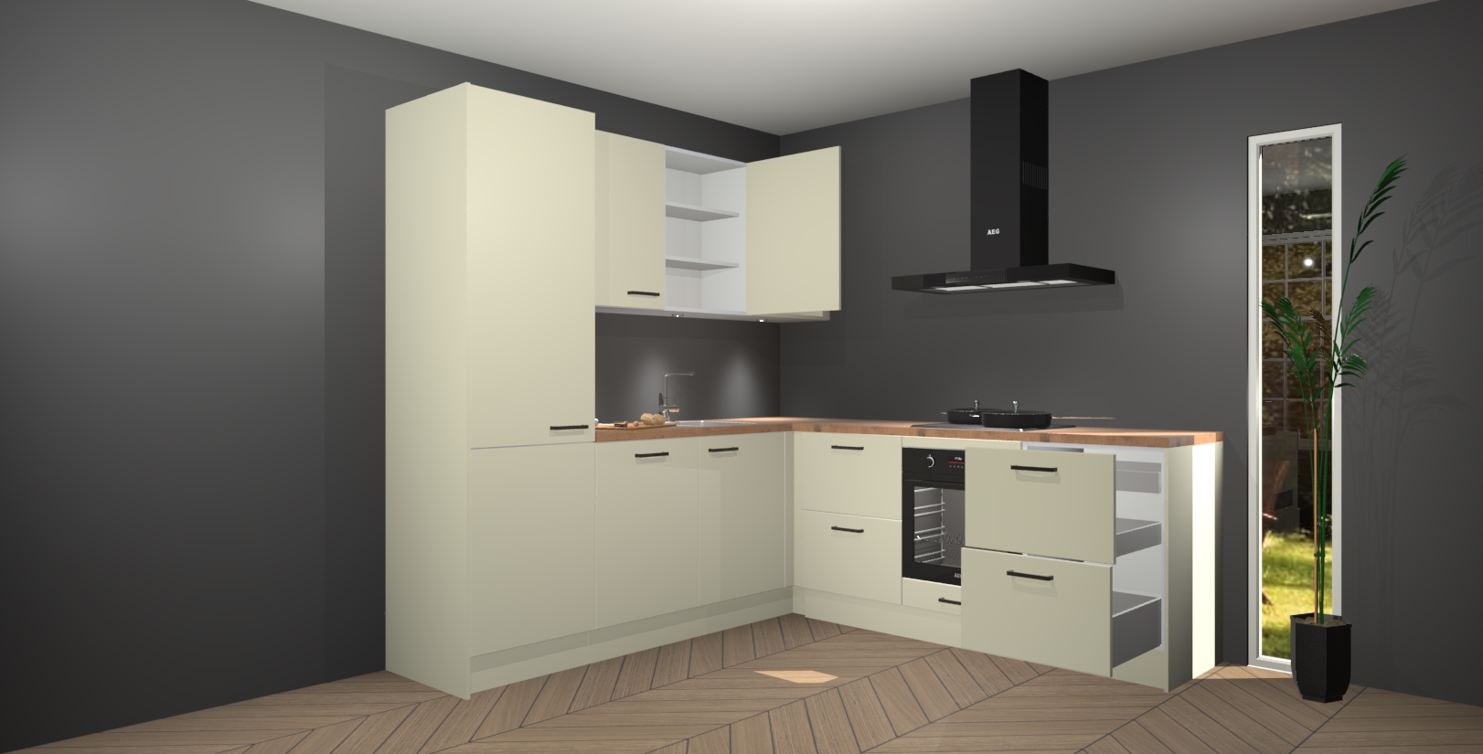 Inclusief plinten, stelpoten en werkblad