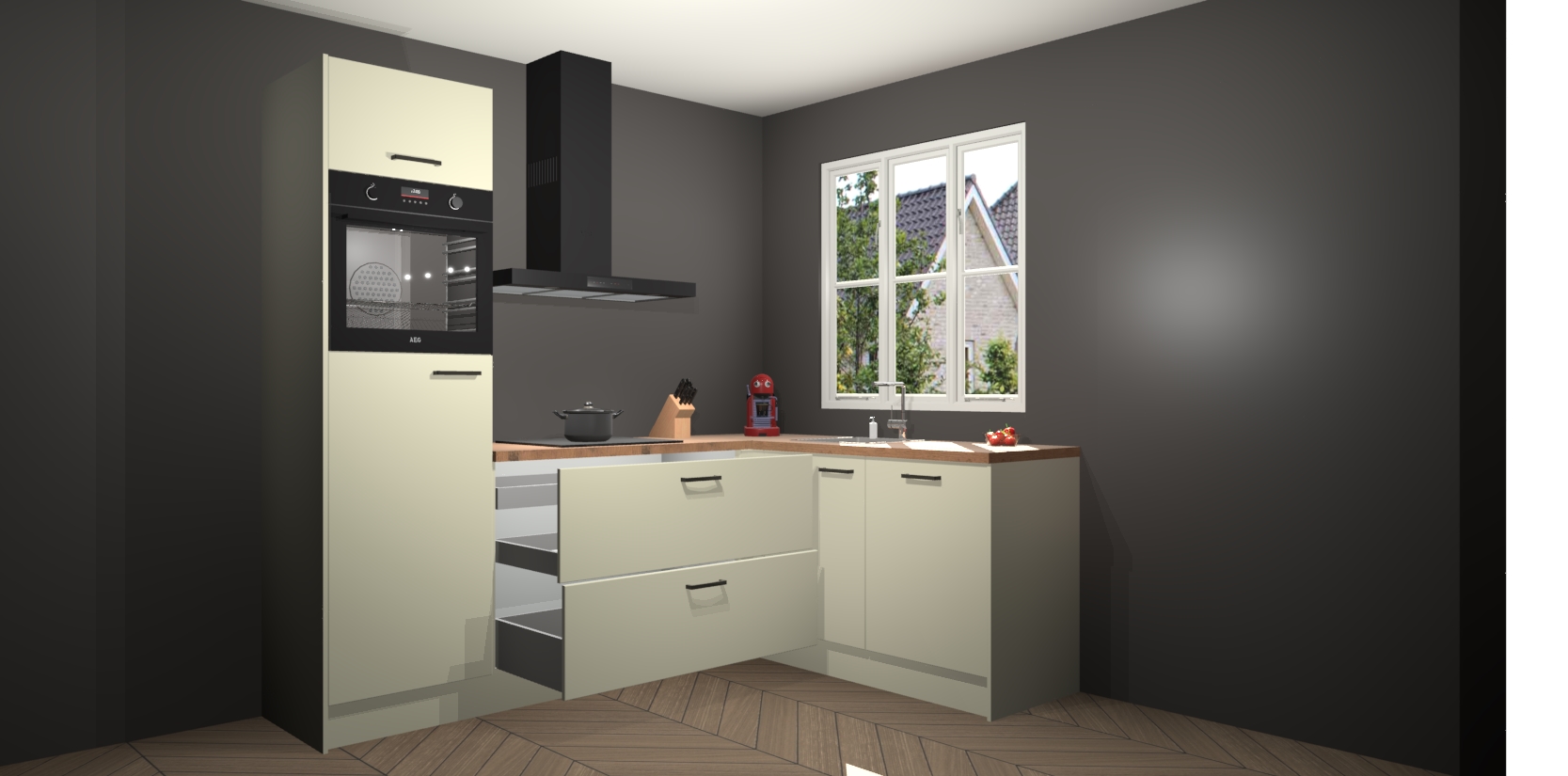 Inclusief plinten, stelpoten en werkblad