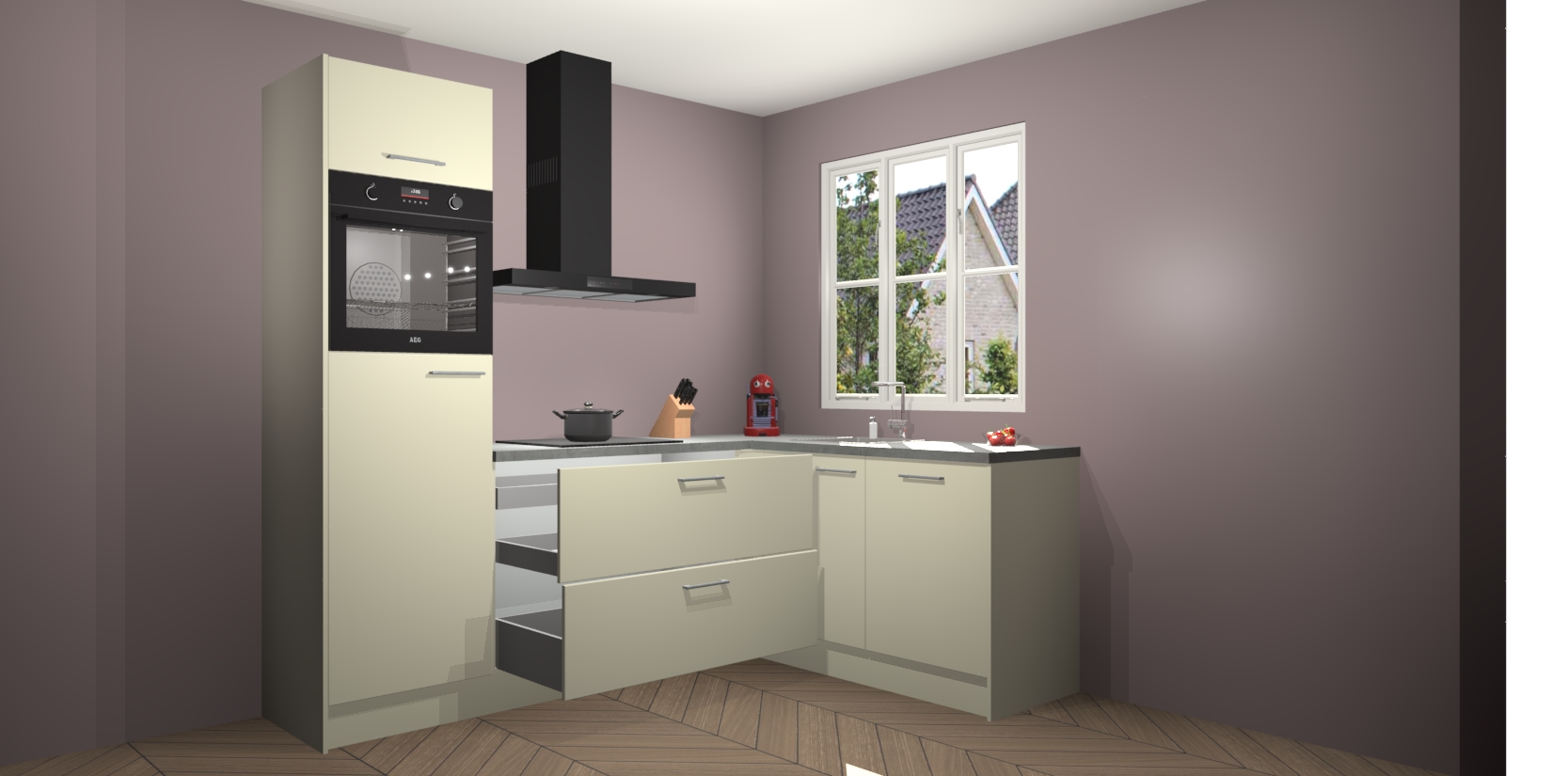 Dit model biedt u voldoende opbergruimte en vijf ingebouwde apparaten: een oven, inductiekookplaat, afzuigkap, vaatwasser en koelkast. Deze apparaten kunnen gemakkelijk worden geüpgrade naar AEG nadat u besteld heeft. De verschillende laden en kastjes bevatten softclose-deuren waardoor ze gezellig dichtvallen met een geruststellend helemaal geruisloos geluid. En dat is nog niet alles! We garanderen ook dat de prijs altijd laag blijft - dus haal nu uw Magnolia keuken Victoria terwijl het kan.