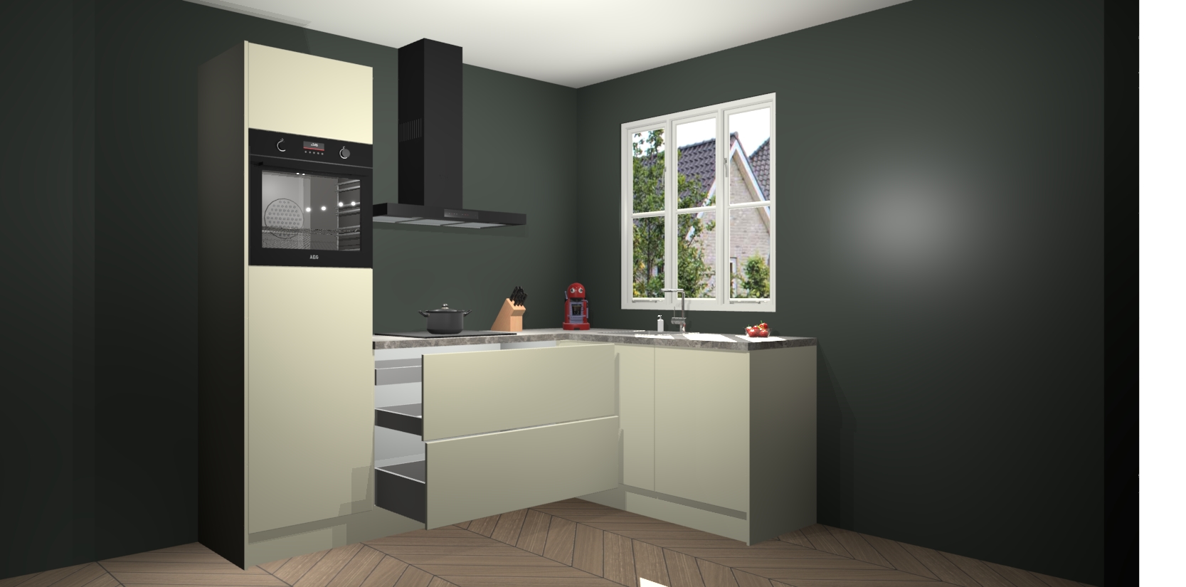 Dit model biedt u voldoende opbergruimte en vijf ingebouwde apparaten: een oven, inductiekookplaat, afzuigkap, vaatwasser en koelkast. Deze apparaten kunnen gemakkelijk worden geüpgrade naar AEG nadat u besteld heeft. De verschillende laden en kastjes bevatten softclose-deuren waardoor ze gezellig dichtvallen met een geruststellend helemaal geruisloos geluid. En dat is nog niet alles! We garanderen ook dat de prijs altijd laag blijft - dus haal nu uw Magnolia keuken Victoria terwijl het kan.