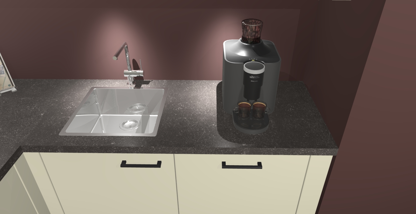 - De spoelbak is nog niet in gevreesd. Dit dient tijdens het werk gedaan te worden