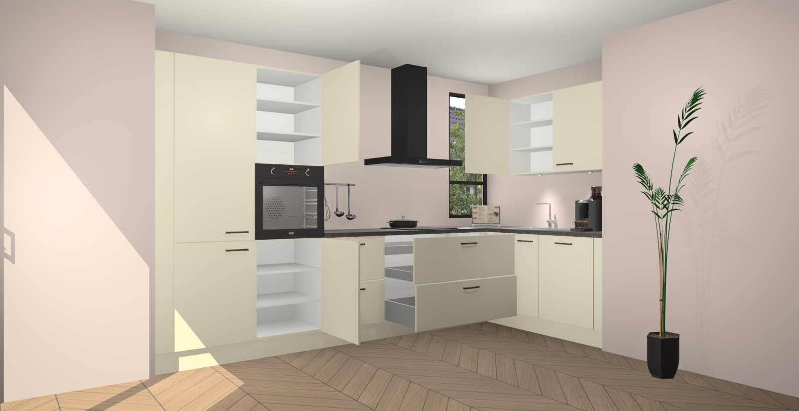 Welkom in uw nieuwe moderne keuken! Laat ons u voorstellen aan de Magnolia keuken Vlaanderen . Deze prachtige hoekkeuken straalt exclusiviteit en luxe uit als geen ander. Het strakke design, de tijdloze kleuren en het model maken van deze keuken een moderne klassieker. En met voldoende opbergruimte heeft deze keuken echt voor ieder wat wils.