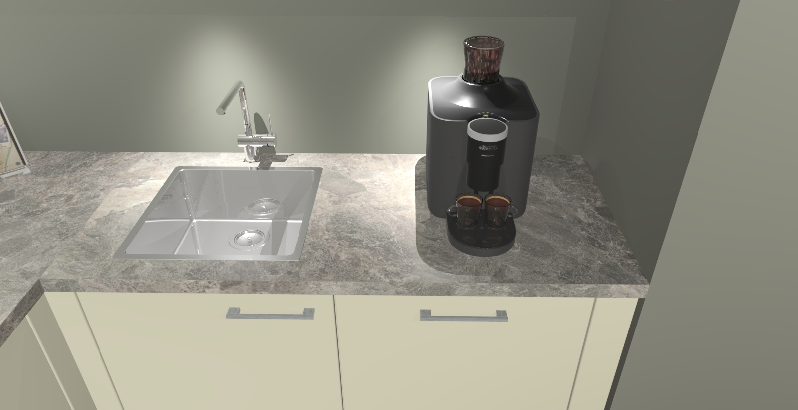 - De spoelbak is nog niet in gevreesd. Dit dient tijdens het werk gedaan te worden