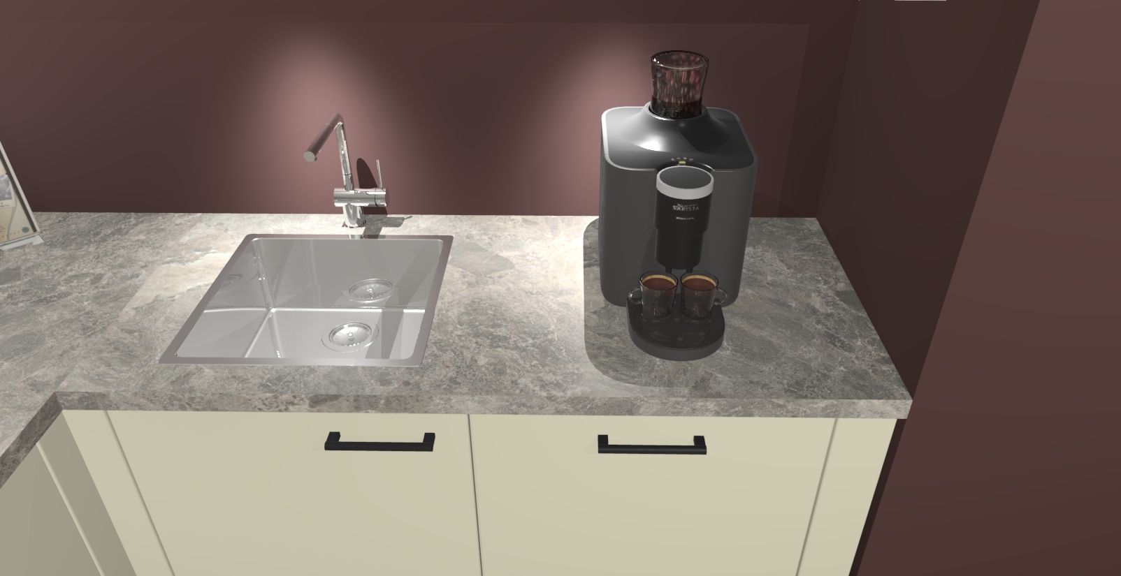 - De spoelbak is nog niet in gevreesd. Dit dient tijdens het werk gedaan te worden