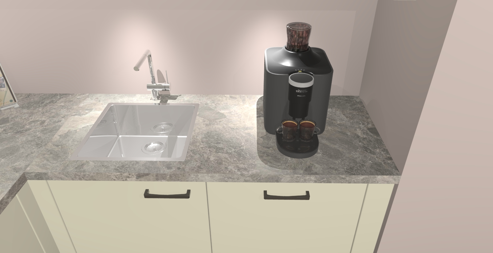 - De spoelbak is nog niet in gevreesd. Dit dient tijdens het werk gedaan te worden