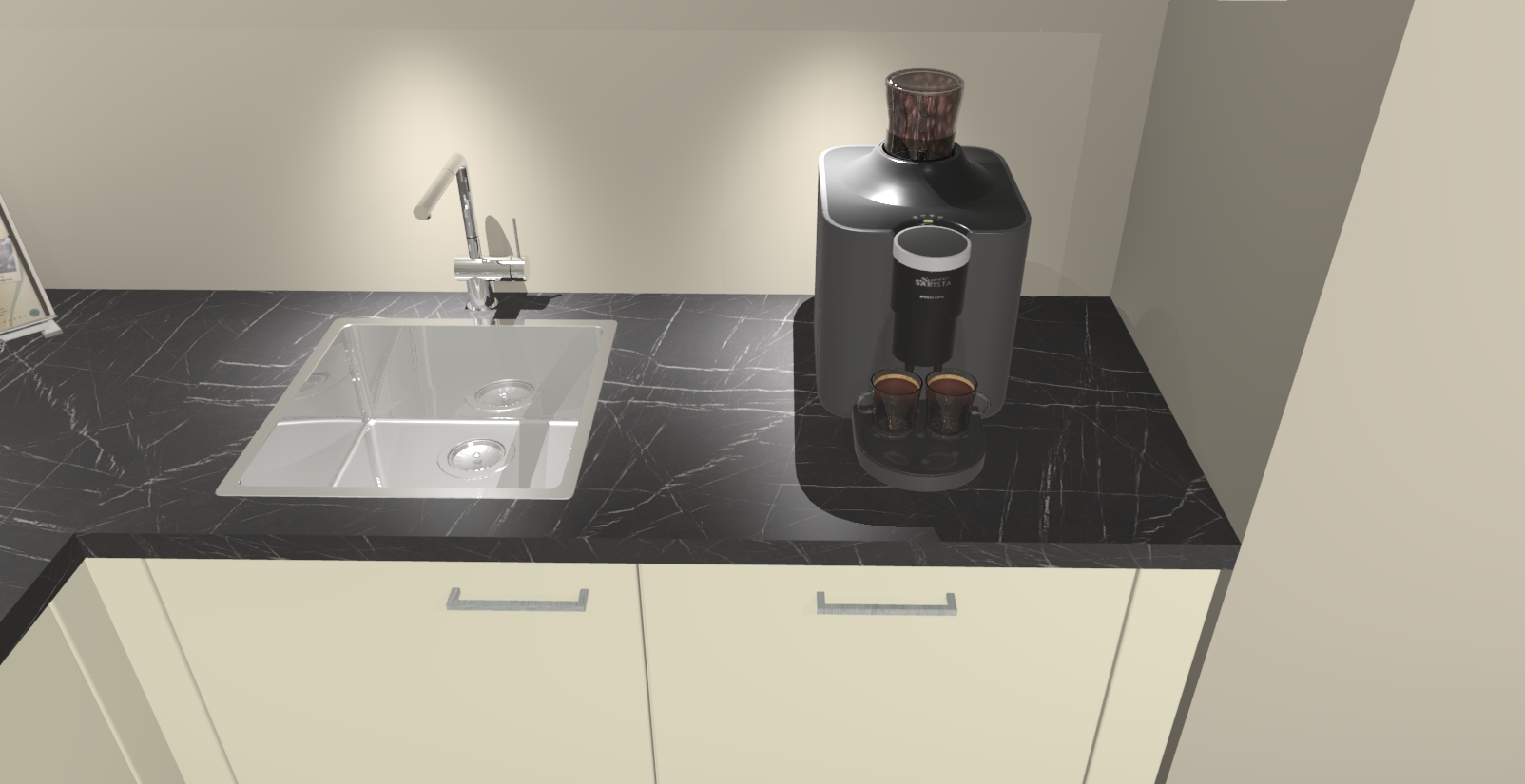 • De spoelbak is nog niet in gevreesd. Dit dient tijdens het werk gedaan te worden