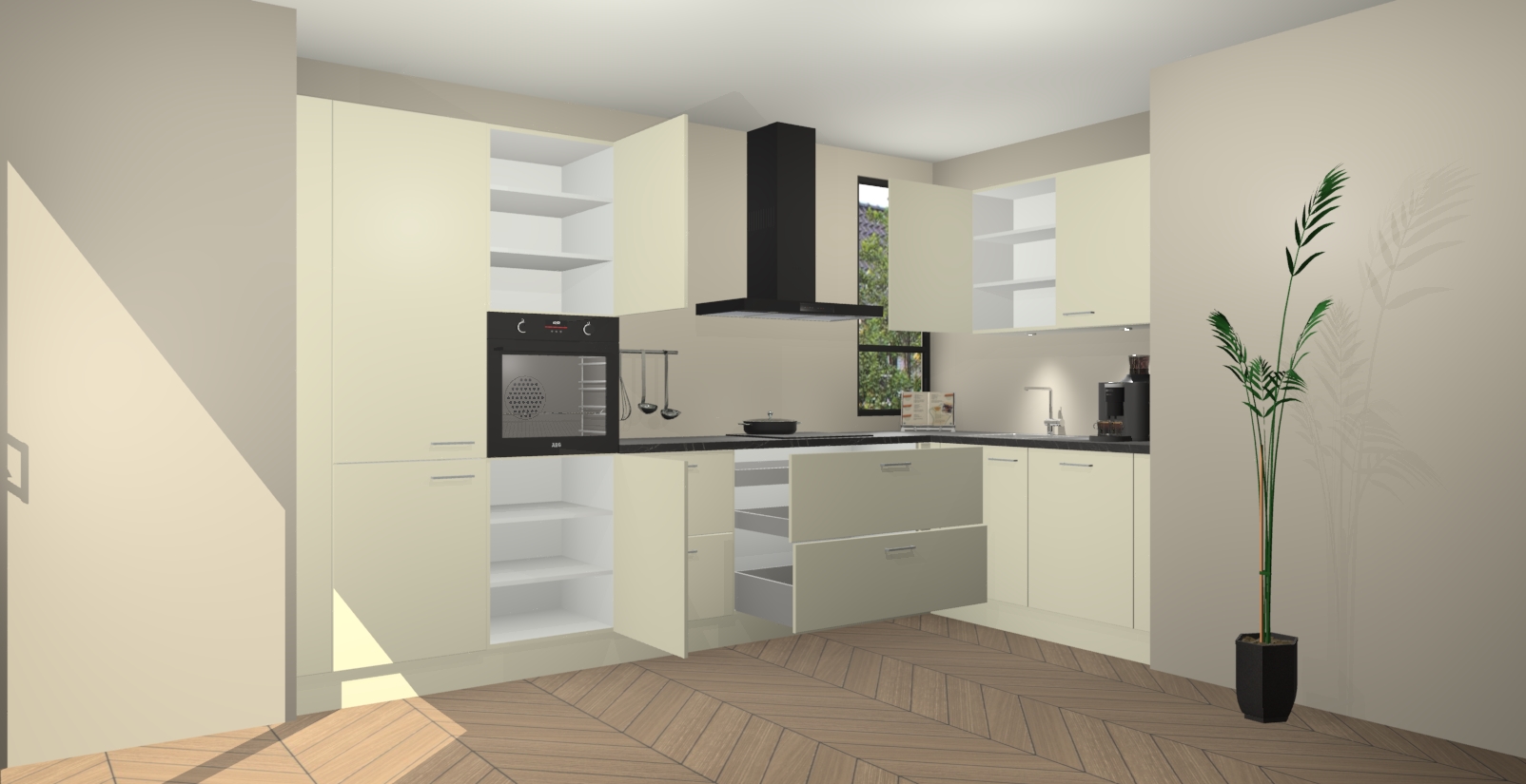Welkom in uw nieuwe moderne keuken! Laat ons u voorstellen aan de Magnolia keuken Vlaanderen . Deze prachtige hoekkeuken straalt exclusiviteit en luxe uit als geen ander. Het strakke design, de tijdloze kleuren en het model maken van deze keuken een moderne klassieker. En met voldoende opbergruimte heeft deze keuken echt voor ieder wat wils.