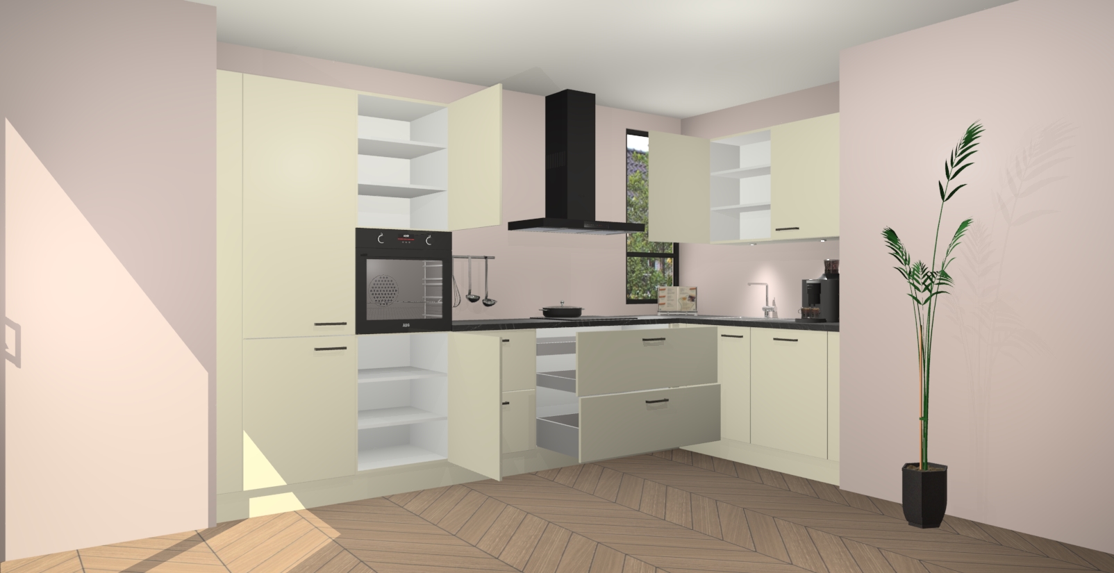 Welkom in uw nieuwe moderne keuken! Laat ons u voorstellen aan de Magnolia keuken Vlaanderen . Deze prachtige hoekkeuken straalt exclusiviteit en luxe uit als geen ander. Het strakke design, de tijdloze kleuren en het model maken van deze keuken een moderne klassieker. En met voldoende opbergruimte heeft deze keuken echt voor ieder wat wils.