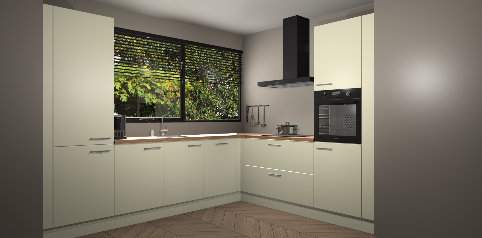 Met een modern, tijdloos design en ruime opslagruimte, zult u zich in no-time thuis voelen in uw nieuwe keuken. Uw leven wordt eenvoudiger met de soft-close deuren die voor het ultieme stille comfort zorgen - geen geluid dat u stoort terwijl u kookt. Ook is de keuken voorzien van 5 ingebouwde apparaten: een oven, inductie kookplaat, afzuigkap, vaatwasser en koelkast. Deze kunnen gemakkelijk na bestelling worden bijgewerkt naar AEG - waardoor uw luxe ervaring compleet is.
