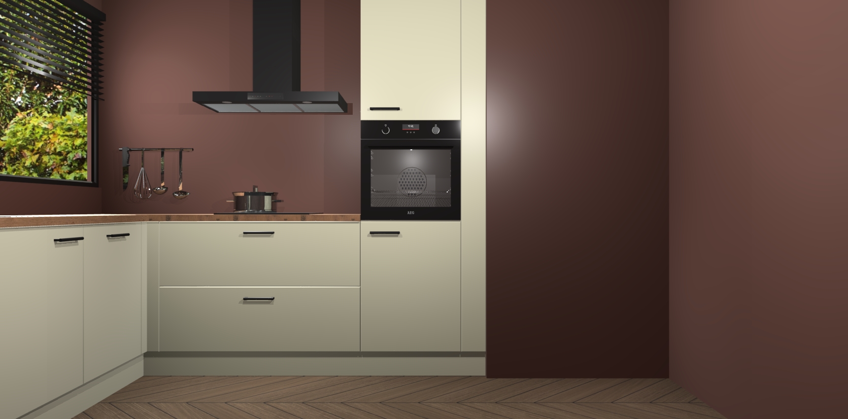 Met een modern, tijdloos design en ruime opslagruimte, zult u zich in no-time thuis voelen in uw nieuwe keuken. Uw leven wordt eenvoudiger met de soft-close deuren die voor het ultieme stille comfort zorgen - geen geluid dat u stoort terwijl u kookt. Ook is de keuken voorzien van 5 ingebouwde apparaten: een oven, inductie kookplaat, afzuigkap, vaatwasser en koelkast. Deze kunnen gemakkelijk na bestelling worden bijgewerkt naar AEG - waardoor uw luxe ervaring compleet is.