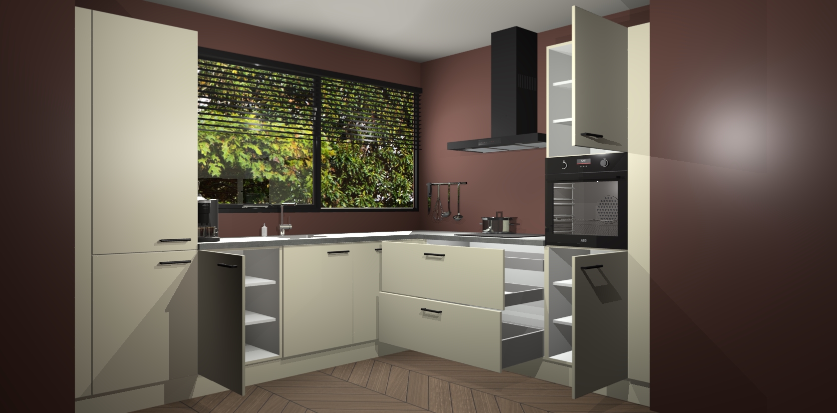 Met een modern, tijdloos design en ruime opslagruimte, zult u zich in no-time thuis voelen in uw nieuwe keuken. Uw leven wordt eenvoudiger met de soft-close deuren die voor het ultieme stille comfort zorgen - geen geluid dat u stoort terwijl u kookt. Ook is de keuken voorzien van 5 ingebouwde apparaten: een oven, inductie kookplaat, afzuigkap, vaatwasser en koelkast. Deze kunnen gemakkelijk na bestelling worden bijgewerkt naar AEG - waardoor uw luxe ervaring compleet is.