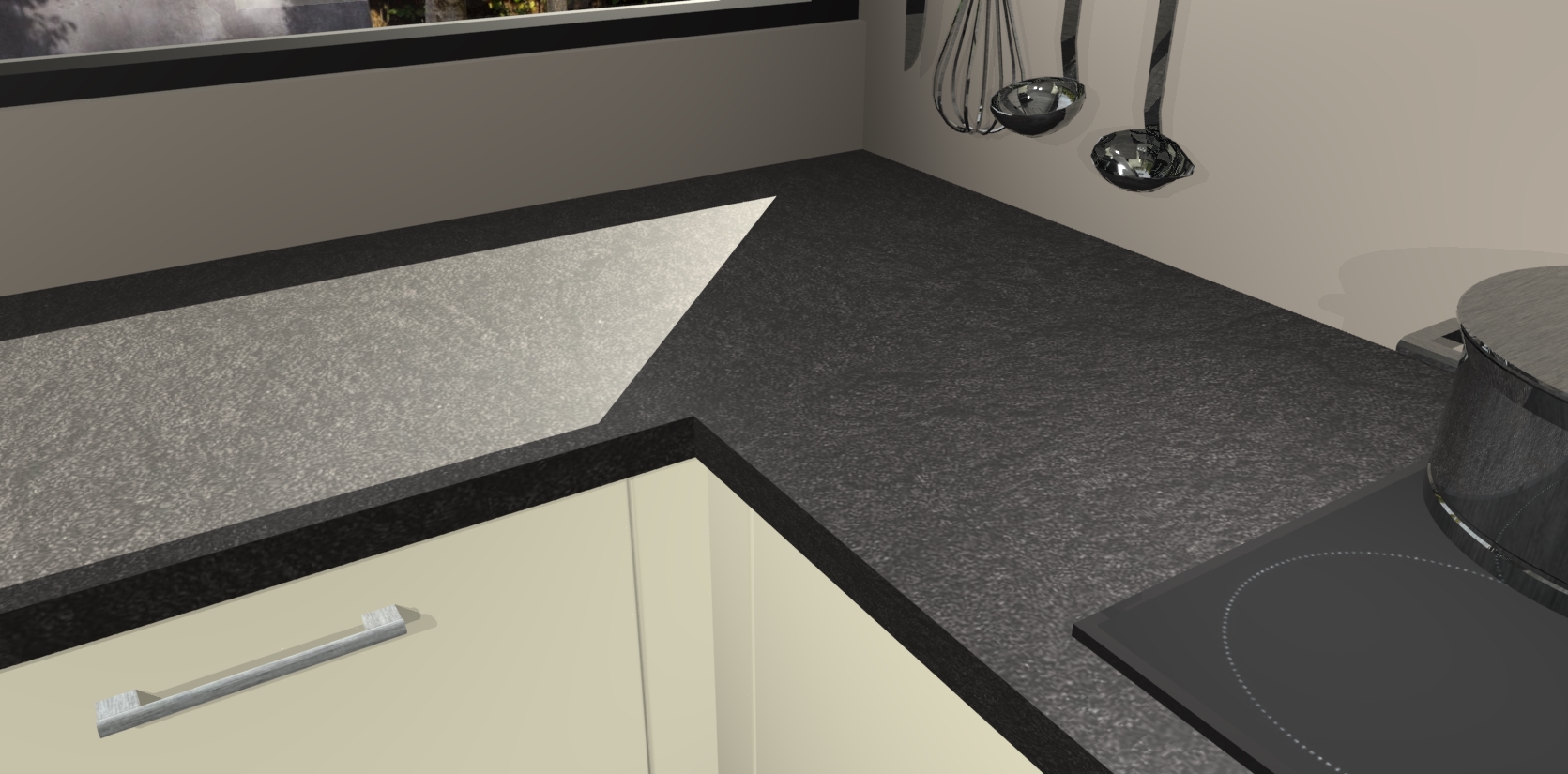 - Bij een hoekwerkblad zijn de hoeken in gevreesd en op maat gemaakt