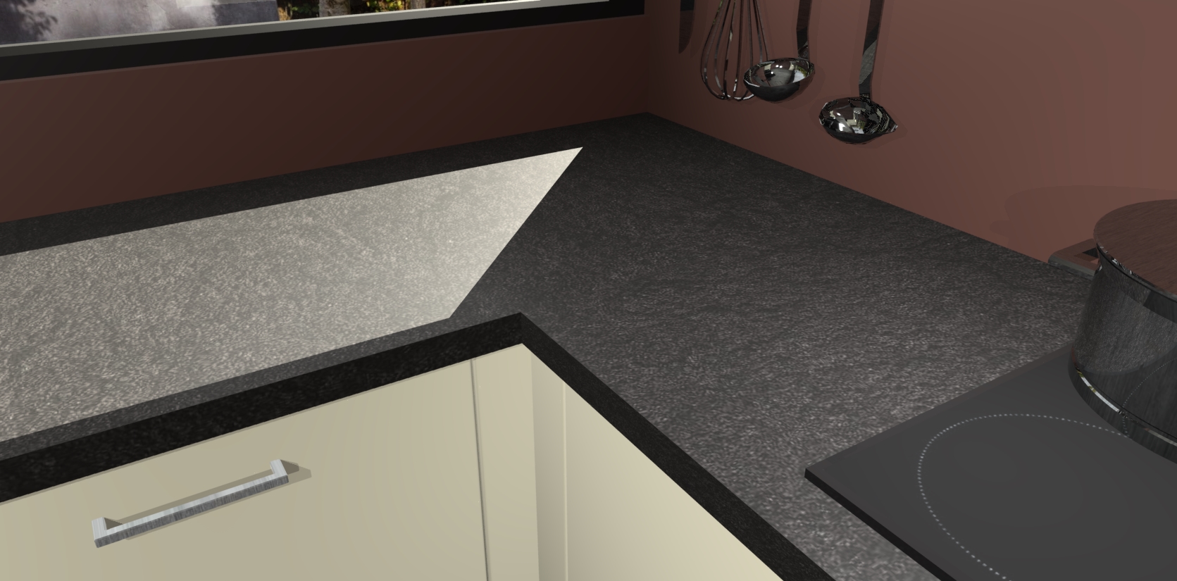 - Bij een hoekwerkblad zijn de hoeken in gevreesd en op maat gemaakt