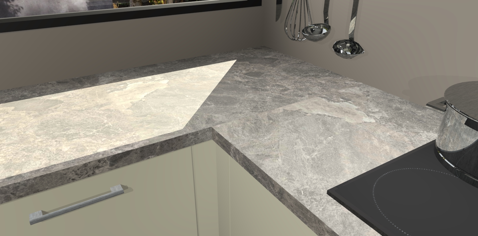 - Bij een hoekwerkblad zijn de hoeken in gevreesd en op maat gemaakt