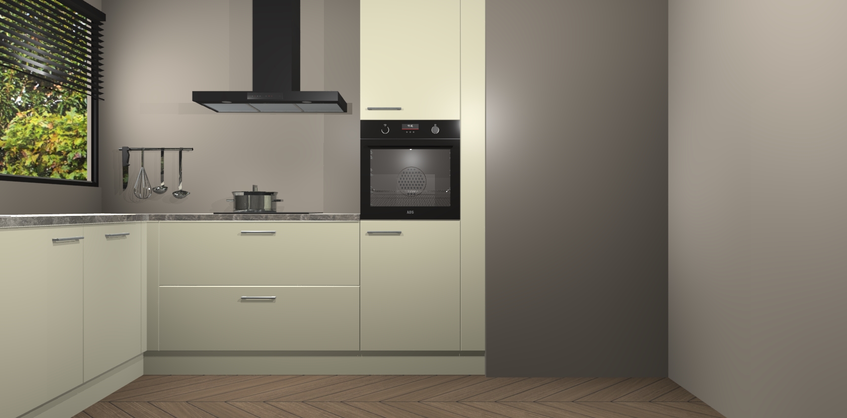 Met een modern, tijdloos design en ruime opslagruimte, zult u zich in no-time thuis voelen in uw nieuwe keuken. Uw leven wordt eenvoudiger met de soft-close deuren die voor het ultieme stille comfort zorgen - geen geluid dat u stoort terwijl u kookt. Ook is de keuken voorzien van 5 ingebouwde apparaten: een oven, inductie kookplaat, afzuigkap, vaatwasser en koelkast. Deze kunnen gemakkelijk na bestelling worden bijgewerkt naar AEG - waardoor uw luxe ervaring compleet is.