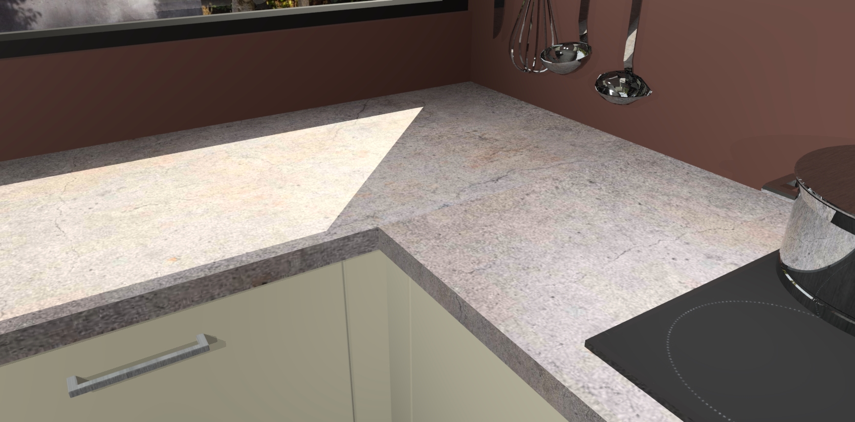 - Bij een hoekwerkblad zijn de hoeken in gevreesd en op maat gemaakt