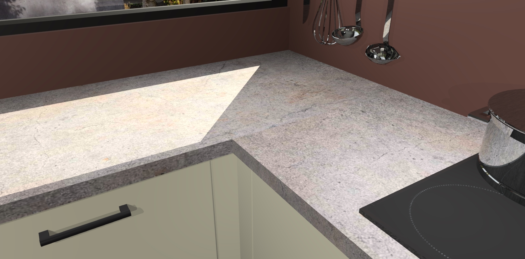 - Bij een hoekwerkblad zijn de hoeken in gevreesd en op maat gemaakt