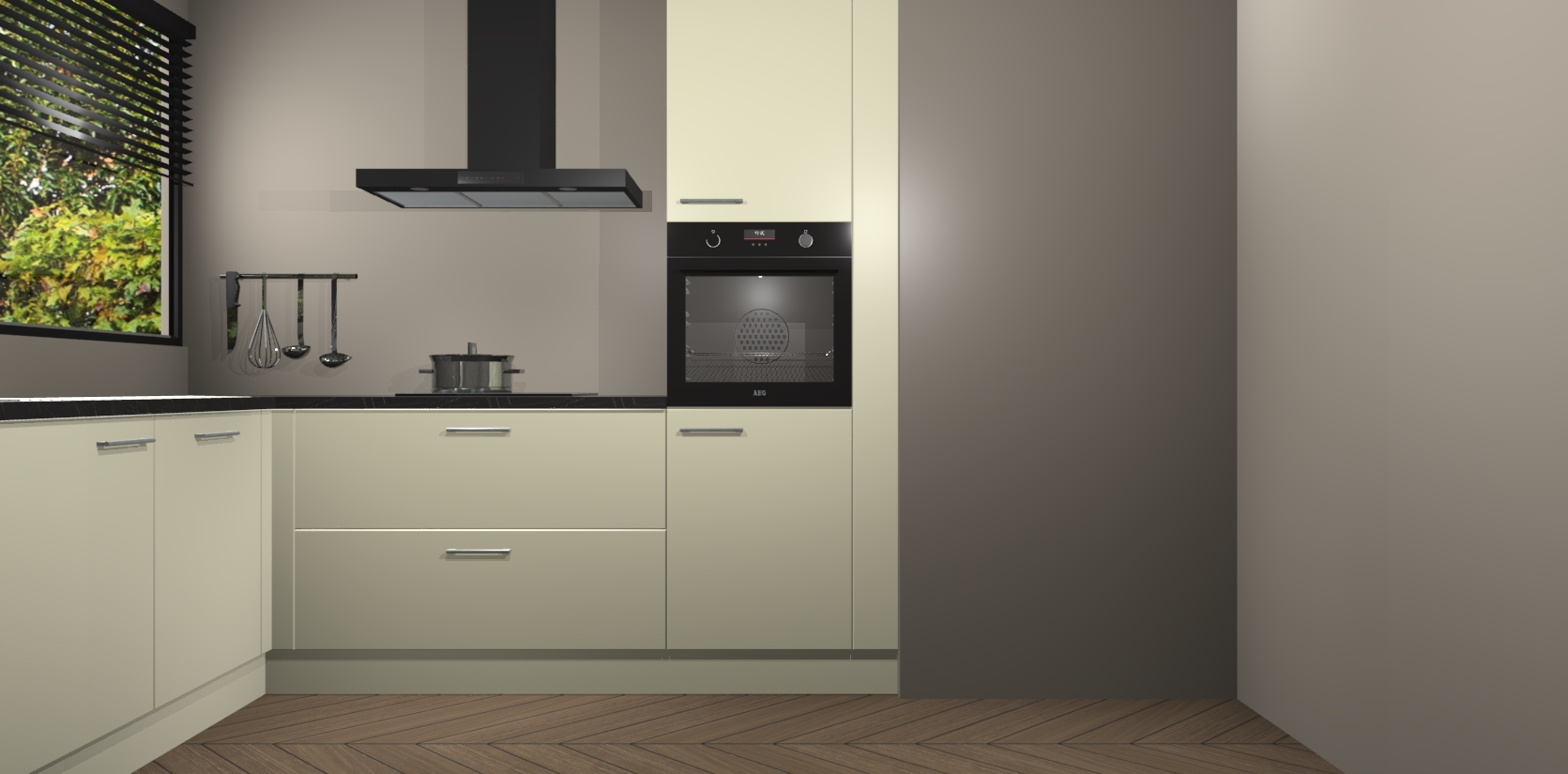 Met een modern, tijdloos design en ruime opslagruimte, zult u zich in no-time thuis voelen in uw nieuwe keuken. Uw leven wordt eenvoudiger met de soft-close deuren die voor het ultieme stille comfort zorgen - geen geluid dat u stoort terwijl u kookt. Ook is de keuken voorzien van 5 ingebouwde apparaten: een oven, inductie kookplaat, afzuigkap, vaatwasser en koelkast. Deze kunnen gemakkelijk na bestelling worden bijgewerkt naar AEG - waardoor uw luxe ervaring compleet is.