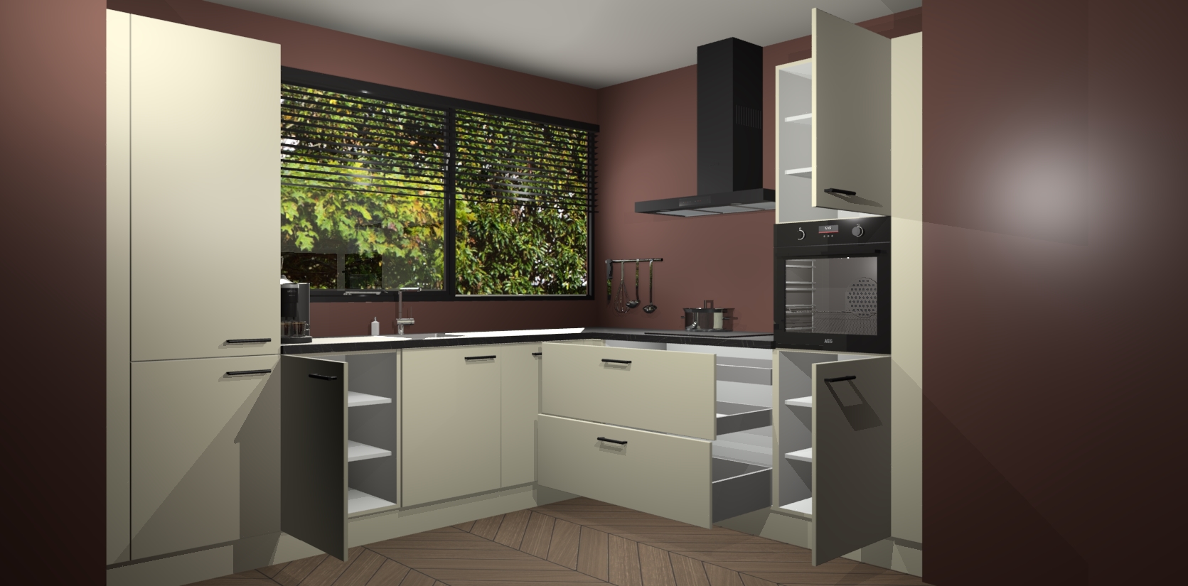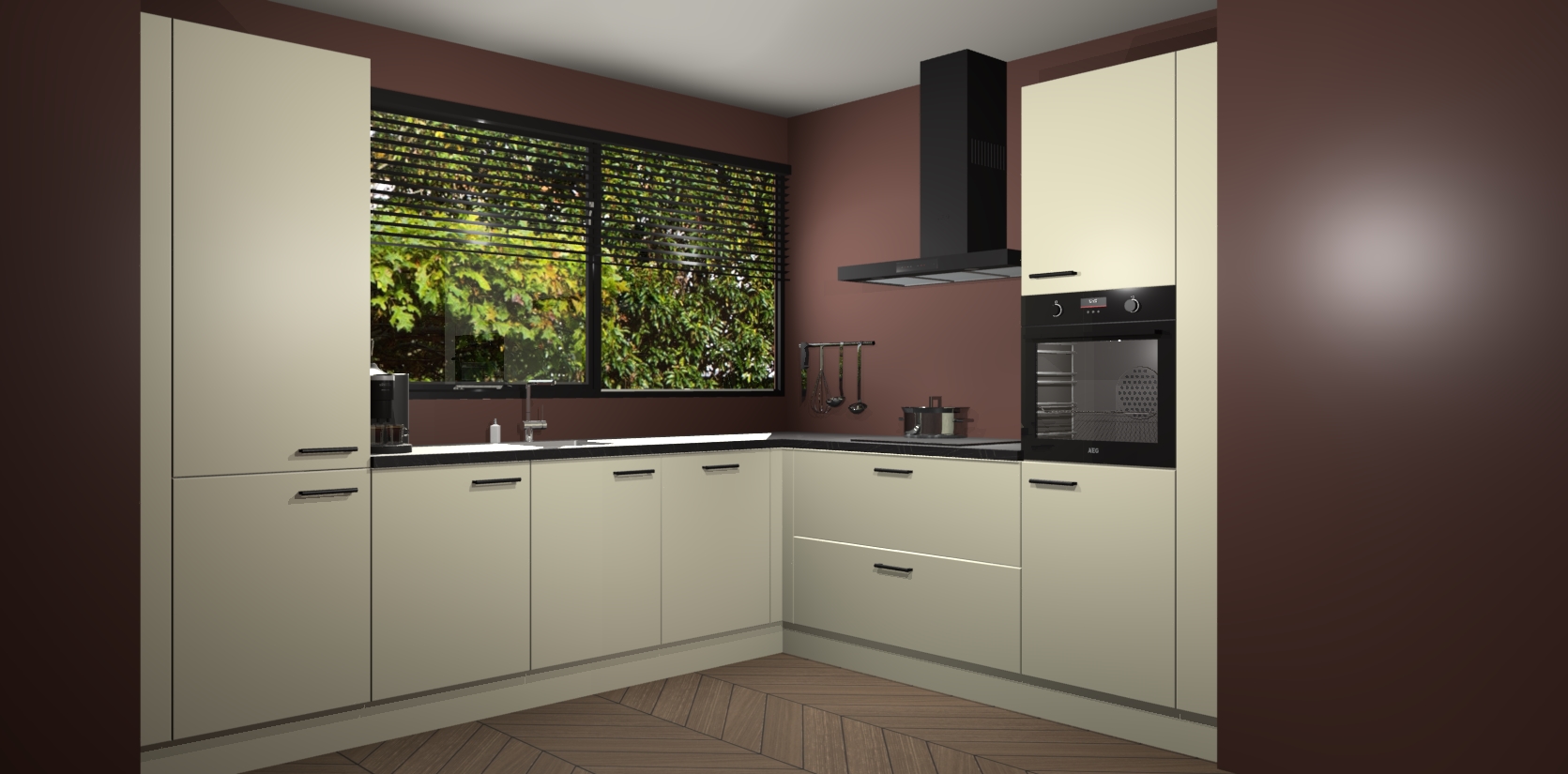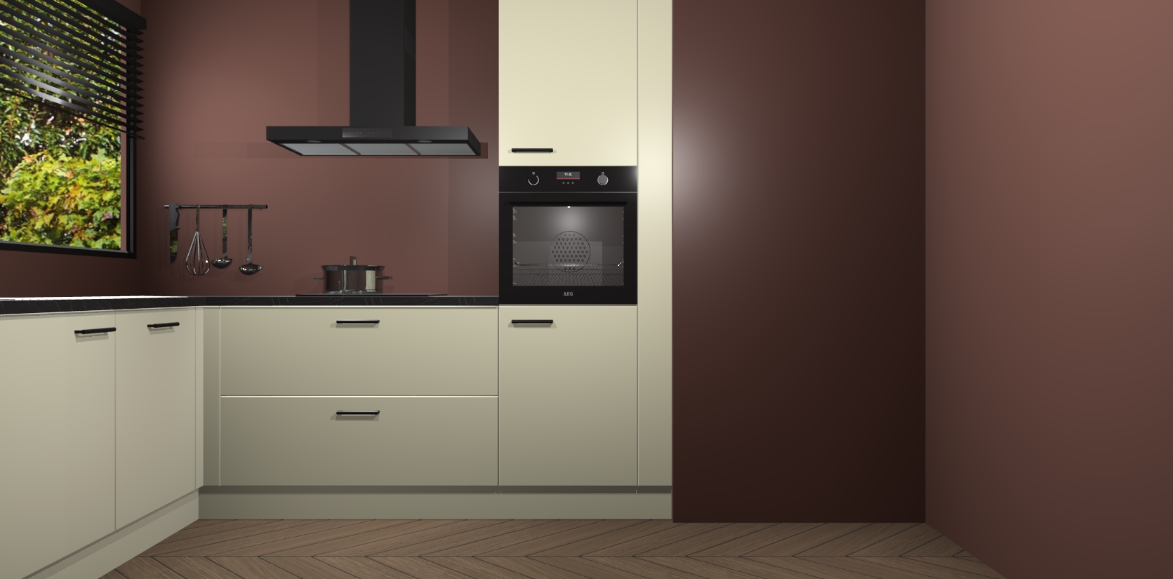 Met een modern, tijdloos design en ruime opslagruimte, zult u zich in no-time thuis voelen in uw nieuwe keuken. Uw leven wordt eenvoudiger met de soft-close deuren die voor het ultieme stille comfort zorgen - geen geluid dat u stoort terwijl u kookt. Ook is de keuken voorzien van 5 ingebouwde apparaten: een oven, inductie kookplaat, afzuigkap, vaatwasser en koelkast. Deze kunnen gemakkelijk na bestelling worden bijgewerkt naar AEG - waardoor uw luxe ervaring compleet is.