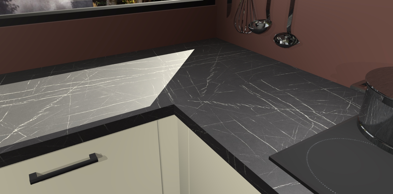 - Bij een hoekwerkblad zijn de hoeken in gevreesd en op maat gemaakt